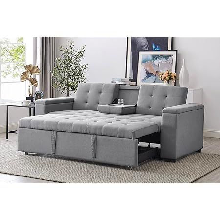Canapé Convertible 3 Places Tissu Beige Avec Coffre De Rangement Larko 245cm