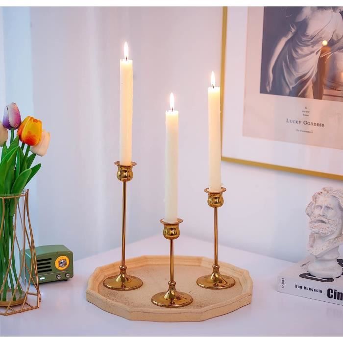 Magnifique décoration de l'Avent : Rendez cet Avent inoubliable avec nos bougeoirs. Couronne DIY : Créez une couronne avec des mèches de bougie et ajoutez d'autres décorations comme de la verdure, des pommes de pin, du ruban ou tout autre élément de votre choix pour créer une ambiance de Noël chaleureuse et festive. Regardez-les devenir la pièce maîtresse de votre table de fête ou de vos décorations de Noël, suscitant joie et conversation à chaque bougie allumée. Bougeoir en laiton doré - diamètre 2.2cm - Le Comptoir Religieux Le bougeoir a un diamètre de 2,5 cm et une hauteur totale de 11 cm, ce qui le rend adapté aux bougies coniques ou aux bougies LED. Bougeoir doré 5 bougies 38 cm BUARAN Chandelier Pour Porte De Bougie Bougeoir, 8 Pièces Chandelier Bougeoir Dorés, Support Bougie Avec Pic, Bougeoir Pour Bougies De L'Avent, Bougeoirs Pour Couronne De L'Avent, Pour Noël, Mariage, Dîner Aux Chandelles Porte Magnifique décoration de l'Avent : Rendez cet Avent inoubliable avec nos bougeoirs. Ils deviendront la pièce maîtresse de votre table de fête ou de vos...