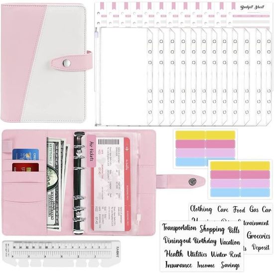 Classeur Budget A6, Classeur Budget Planner Pochettes Depenses Transparentes à Fermeture Éclair Parcourez notre sélection de enveloppes pour espèces sans fermeture éclair : vous y trouverez les meilleures pièces uniques ou personnalisées de nos boutiques Matériau : plastique Noeud rose - Classeur en cuir PU A6, 26 pièces de couverture de cahier rechargeable à 6 anneaux... Enveloppe Budget Classeur,Enveloppe Transparente à Fermeture éclair En PVC A5-A6 Pour 6 Enveloppe Rose Protégez et stockez votre argent, factures, coupons, billets de cinéma, reçus, factures et autres petites pièces