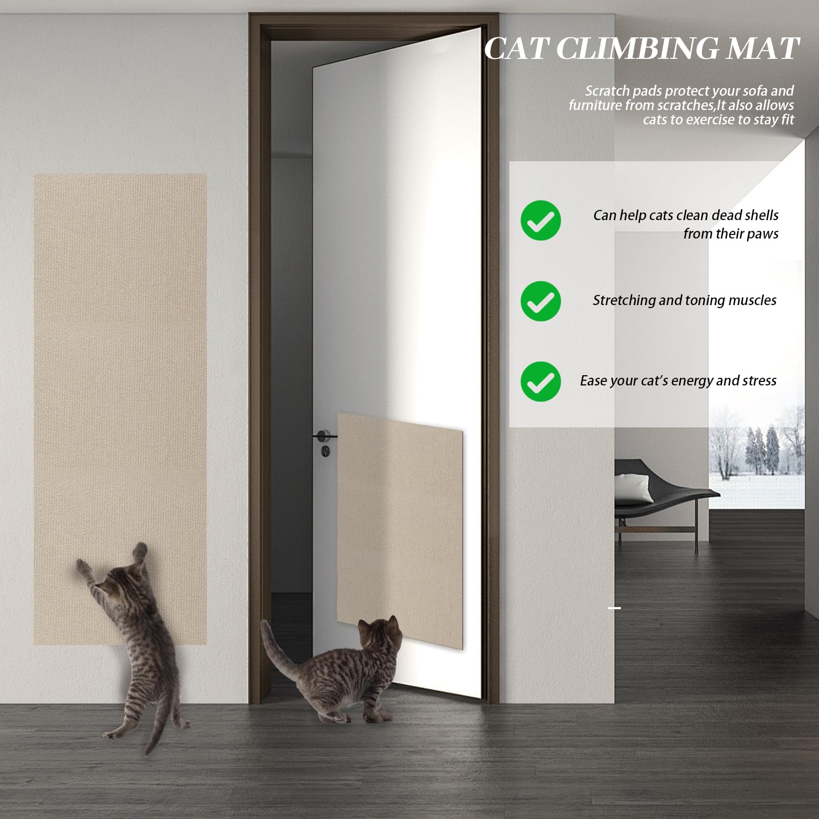 Ambiance chaleureuse : Sa couleur rouge sombre crée une atmosphère accueillante, transformant vos escaliers en un espace à la fois fonctionnel et élégant, parfaitement adapté aux intérieurs urbains et contemporains Découpe : Sa capacité à découpé permet d'ajuster précisément la taille pour s'adapter à vos escaliers, murs ou meubles, offrant une solution personnalisée pour divers espaces ou Matériau adapté aux animaux : Conçu avec un polyester robuste et respectueux des animaux de compagnie, ce tapis convient particulièrement aux foyers avec chats, apportant une surface résistante aux griffades tout en préservant l'esthétique Tapis Protection Chat Tapis Griffoir Pour Chat, En Sisal Naturel, Autocollant Pour Chat, Protection De Canapé Pour Chat, Tapis Plat De Remplacement Facile Pour étagères D'arbre à Chats Tapis Autocollant Griffoir Découpable Application : Ce tapis de tapis auto-adhésif est idéal pour les installations telles que les grilles, les griffoirs et les nids et offre un espace de repos et d’activité confortable à la maison Spécification : Matériau : tissu non tissé, polyester Couleur : gris clair, gris foncé, kaki Dimensions : 40 x 200 cm Contenu : 1 tapis griffoir pour chat... Tapis griffoir pour Chats - Protection canapé Meuble Sol - Tapis en