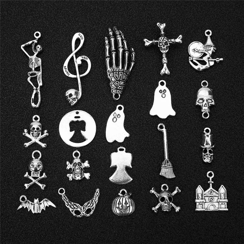 10 Breloques Halloween en Acier Inoxydable – 10 Modèles Beau Pendentif En Acier Inoxydable En Forme De Crâne De Buffle BOGEEL Lot de 2 colliers avec pendentif tête de mort squelette pour couples, colliers d'amitié, collier punk, bijoux d'Halloween, Métal Imprimé sur de l'acrylique turquoise coloré et associé à une chaîne en argent, ce collier simple tête de mort est une jolie façon de montrer subtilement votre côté effrayant