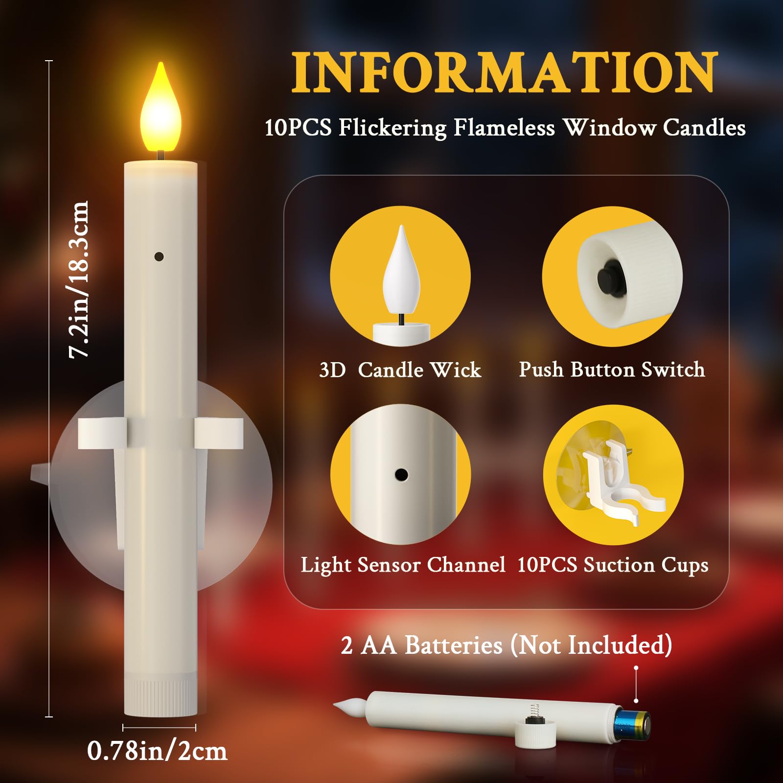 Lot Bougie Noel ASFASFq-Lot De 10 Bougies LED Avec Capteur Crépusculaire - Bougies électriques Sans Flamme Vacillantes Avec Bougeoir Pour Fenêtre, Table, Halloween, Noël, Décoration De Fête | Rakuten Bougie Noel Decoration Ces bougies sans flamme s'adaptent également à la plupart des bougeoirs et peuvent être placées dans des bougeoirs, ce qui les rend parfaites pour les rebords de fenêtre, les manteaux de cheminée et les salles à manger. Idéale comme décoration : Chaque bougie solaire mesure 5,8 cm de diamètre et 5,1 cm de hauteur et offre un effet de flamme réaliste. Vous pouvez les placer sur les fenêtres et les terrasses extérieures, et les associer à des lanternes ou des bocaux La lumière chaude de ces bougies LED crée une atmosphère chaleureuse qui est parfaite pour diverses décorations de Noël, décorations de table et arrangements festifs Ces bougies LED disposent d'un capteur crépusculaire intégré qui allume automatiquement les bougies à la tombée de la nuit et les éteint à l'aube. Elles apportent joie et surprise à n'importe quelle pièce. Bougies sans flamme - Lumières de fenêtre avec capteur LED Que ce soit comme décoration festive ou pour la décoration de votre salon, ces bougies sans flamme ajoutent une atmosphère particulière à toutes les occasions. Description du produit : Ces bougies de Noël décoratives se caractérisent par un design unique et un savoir-faire exquis, et disposent d'une flamme jaune chaud réaliste qui simule parfaitement l'effet d'une vraie flamme. Chaque bougie de fenêtre sans flamme est livrée avec une ventouse qui permet une fixation sans effort à la fenêtre et empêche le desserrage accidentel des rideaux. Bougies à capteur crépusculaire : vous recevrez 6 bougies de fenêtre sans flamme. Ces bougies sans flamme s'adaptent également à la plupart des bougeoirs et peuvent être placées dans des bougeoirs, ce qui en fait une décoration idéale pour les rebords de fenêtre, les manteaux de cheminée et les salles à manger. Le design des bougies LED sans flamme émet une lumière chaude et assure une expérience de bougie authentique. Matériau : ces décorations de bougies de Noël sont fabriquées à partir de matériaux de haute qualité mesurant 18 x 2 cm, compactes et pratiques. Contrairement aux vraies bougies, elles n'ont pas de flamme réelle et se présentent dans un aspect global raffiné et élégant qui crée une atmosphère vintage et mystérieuse.