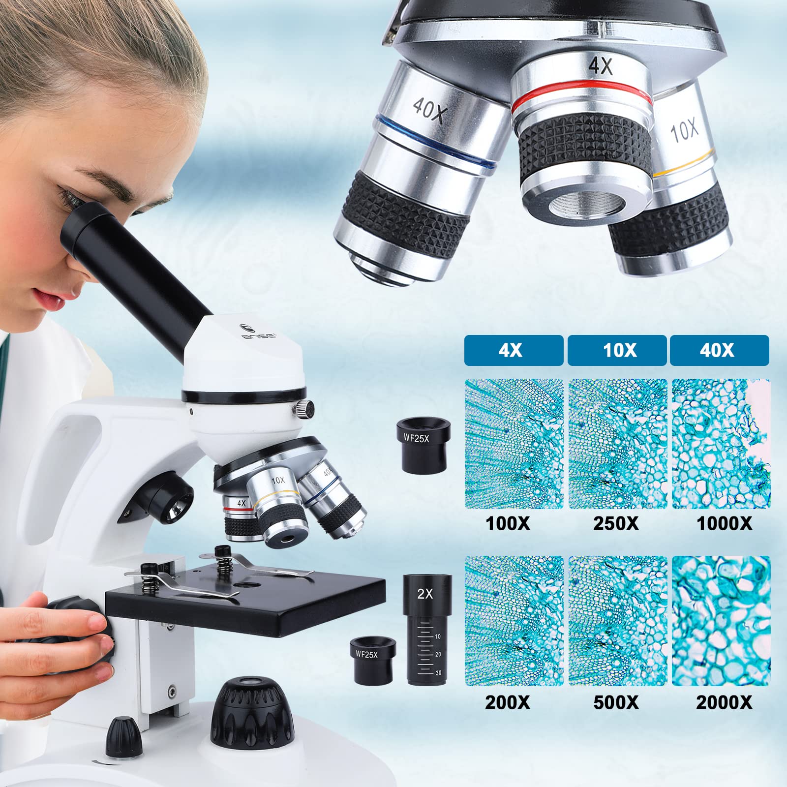 【Double éclairage LED】LED supérieure et inférieure améliore la luminosité et la lumière pour observer plus facilement les objets et les diapositives avec les spécimens. Angle d'observation de 45 ° Il peut efficacement éviter la douleur cervicale causée par le long temps de vision de l'enfant et aider à maintenir l'utilisateur dans la bonne position. Nous fournissons un adaptateur téléphonique pour que vous puissiez voir les résultats d'observation sur l'écran du téléphone tout en réduisant la fatigue oculaire. Si vous avez des questions, n'hésitez pas à nous contacter. Support de téléphone intelligent Pour faciliter l'observation et partager vos observations avec vos amis. Microscope pour Enfant étudiante et Adulte 250X-2000X Portable Seule la focalisation grossière à régler, facile à utiliser. Faites des spécimens et partagez-les à vos amis tout de suite. Parfait pour le premier microscope de vos enfants]L'objectif de ce microscope est fait de verre optique complet et suffisamment de lumière pour l'observation Jumelles Enfant BNISE 100x-2000x Microscope Enfants étudiants, Avec 30 Diapositives De Microscope, Microscope Professionnel Pour L'enseignement De La Biochimie à Domicile Dans Les Laboratoires Scolaires Adaptateur Smartphone Pour Microscope 【100-1000x】Microscope à haut grossissement équipé d'un oculaire grand angle 25x et 360 degrés de lentilles d'objectif de table rotatives à 4x, 10x, 40x, offre trois niveaux de grossissement : 100x, 250x et 100x. Focus grossier Le microscope est facile à mettre au point, il suffit de tourner lentement le bouton de mise au point pour que les enfants puissent s'ajuster facilement pour obtenir des images plus claires et plus nettes. About this item [100-1000X]High magnification microscope equipped with a 25x wide angle eyepiece and 360 degree 4X, 10X, 40X rotating tabletop objective lenses, offers three magnification levels Système d'éclairage double LED La source lumineuse supérieure convient à l'observation d'objets opaques et la source lumineuse inférieure convient à l'observation d'échantillons. En fonction de la situation réelle, réglez l'intensité de la lumière à l'aide du bouton de réglage de la luminance. Les LED supérieure et inférieure peuvent observer un sujet opaque et transparent. Notre équipe de service vous répondra dans un délai de 24 heures.