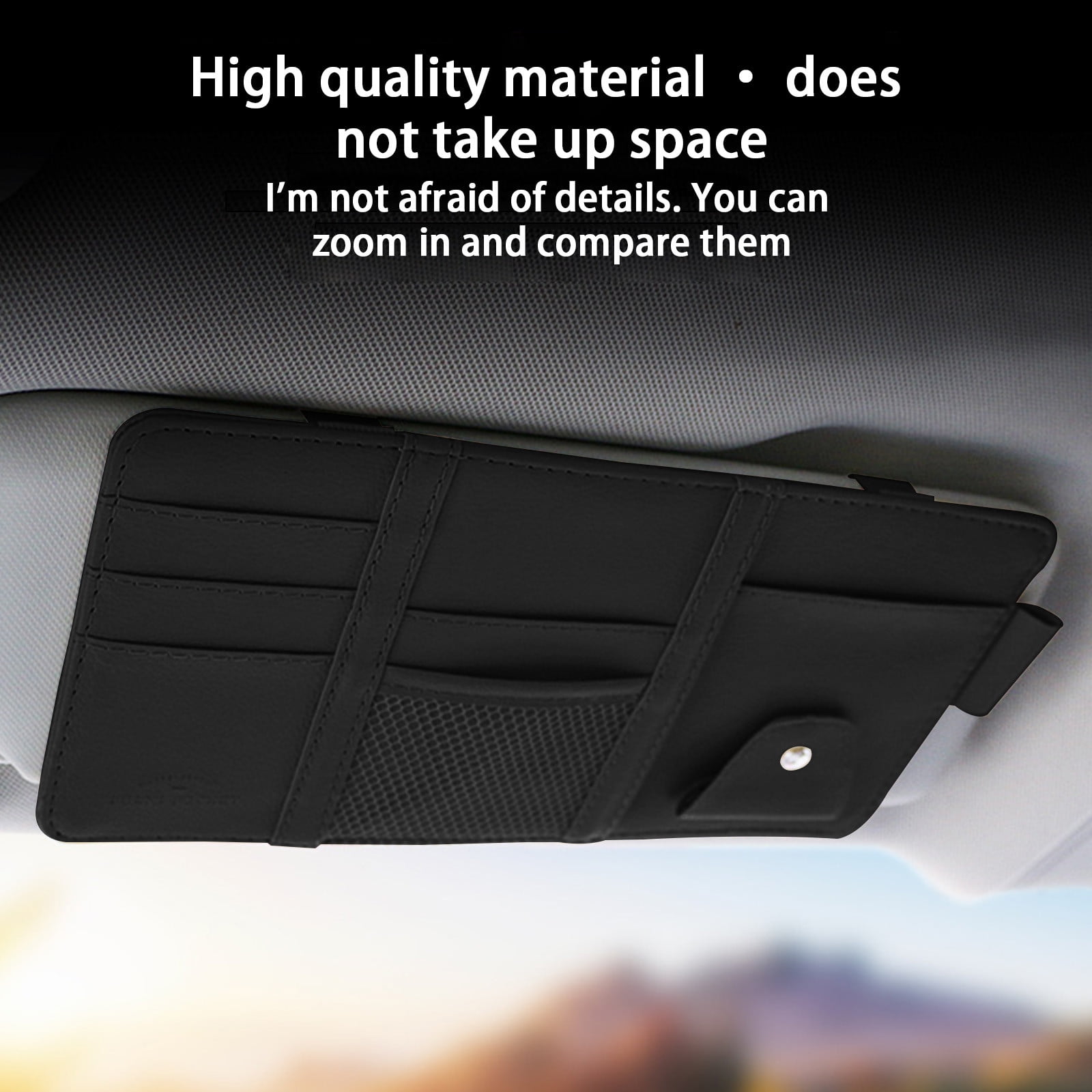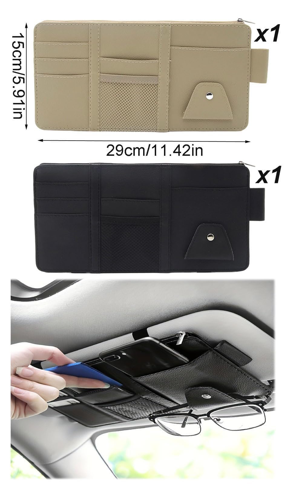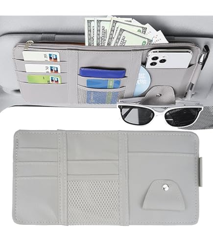 Emballage] L'organiseur de voiture à l'avant pour pare-soleil, avec lequel les documents de véhicule et les petits articles de voyage (comme des cartes, des stylos, des lunettes de soleil, etc.) sont organisés et toujours à portée de main L'organiseur de voiture reste bien en place et garantit une expérience de conduite plus sûre. Lot de 2 organiseurs de pare-soleil de voiture, pochette de rangement pour voiture, ultra fine, en cuir synthétique, universel, camion, SUV avec plusieurs poches en filet à fermeture éclair pour cartes, permis 【Matériau durable】L'organiseur pour voiture est fabriqué en cuir PU de haute qualité, résistant à la lumière et conservant sa forme, ce qui le rend idéal pour une utilisation quotidienne dans les véhicules. 【Compatibilité universelle avec tous les véhicules】Le rangement pour voiture mesure 29 × 15 cm et présente un extérieur gris qui s'harmonise avec l'intérieur de la plupart des modèles de véhicules et garantit un aspect propre et esthétique dans le véhicule. 【Large gamme d'applications】L'organiseur pour pare-soleil permet de ranger et d'organiser cartes, clés, lunettes de soleil, téléphones, stylos, permis de conduire et bien plus encore, et répond ainsi aux besoins quotidiens des conducteurs, des navetteurs ou des familles en déplacement. Description de Organiseur de pare-soleil de voiture - Pochette de rangement en cuir avec fermeture éclair pour cartes, Description : [Matériau en cuir PU] : La pochette pour pare-soleil de voiture est fabriquée en cuir PU de haute qualité, durable, inodore, fin et élégant. Elle peut supporter un poids maximal et éviter l'affaissement et la chute du milieu. [Grande capacité et... Organiseur De Pare Soleil De Voiture,Auto Poche Intérieure Pare,Gris Il suffit de le fixer et de l'utiliser. 【Conception de rangement】L'organiseur pour pare-soleil présente une conception bien pensée avec plusieurs poches de différentes tailles. 【Installation facile】L'organiseur pour voiture peut être fixé solidement au pare-soleil de tous les modèles de véhicules à l'aide de bandes élastiques, sans avoir besoin d'outils.