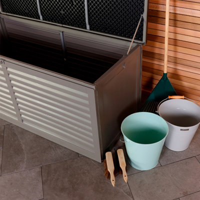 Coffre A Jouet CHARLES BENTLEY Coffre De Rangement 190L Extérieur Jardin Coffre De Rangement Intérieur Convient pour un usage intérieur comme extérieur. CAPACITÉ DE STOCKAGE PRATIQUE DE 190L : Ce coffre de rangement dispose d'une capacité de 190 litres, offrant suffisamment d'espace pour une grande variété d'objets, notamment des outils, des coussins, des jouets de jardin et bien plus encore.STRUCTURE DURABLE : Ce coffre de rangement Charles Bentley est fabriqué en polypropylène (plastique) et acier résistants, ce qui lui confère... Charles Bentley Coffre de Rangement 190L Extérieur Jardin - Plastique Gris, Sangles, Fermeture Cadenas, PP Robuste, Intérieur/Ex48 · Présentation du produit CAPACITÉ DE STOCKAGE PRATIQUE DE 190L : Ce coffre de rangement dispose d'une capacité de 190 litres, offrant suffisamment d’espace pour une grande variété d’objets, notamment des outils, des coussins, des jouets de jardin et bien plus encore. Si le coffre doit être déplacé, assurez-vous qu’il soit entièrement vidé au préalable. Coffres de rangement extérieurs en plastique Il est doté d’un polypropylène robuste, d’une boucle pour cadenas et de deux sangles en plastique. Charles Bentley 190L robuste jardin extérieur en plastique Boîte de rangement, 96 x 45,8 x 49., 3cm Informations générales sur le produit: Fermeture en plastique;, Loquet à cadenas; Convient pour une utilisation intérieure et extérieure; Caractéristiques: Matière: Polypropylène, acier., Couleur: Gris, Noir , Poids: 4., 4 Kilogrammes Aspirateur robuste en polypropylène d'une capacité de 190 l. Il est équipé d’une structure en polypropylène robuste, d’un support pour cadenas et de deux sangles PP pour maintenir le couvercle. PROTÉGEZ VOS AFFAIRES DE LA PLUIE : Ce coffre de rangement en plastique est parfait pour stocker et protéger vos affaires contre les conditions climatiques extrêmes. Couvercle soutenu par 2 sangles en polypropylène;
