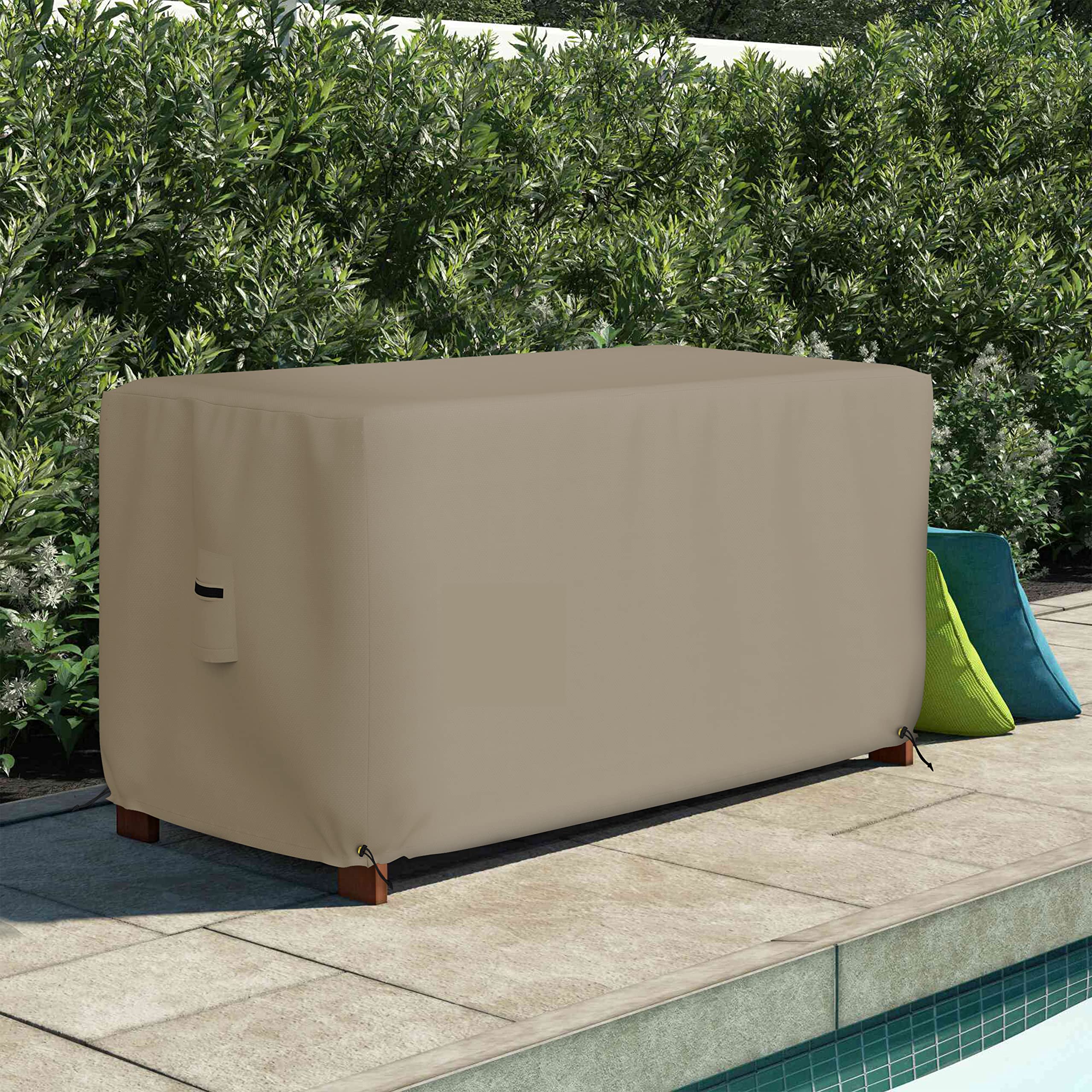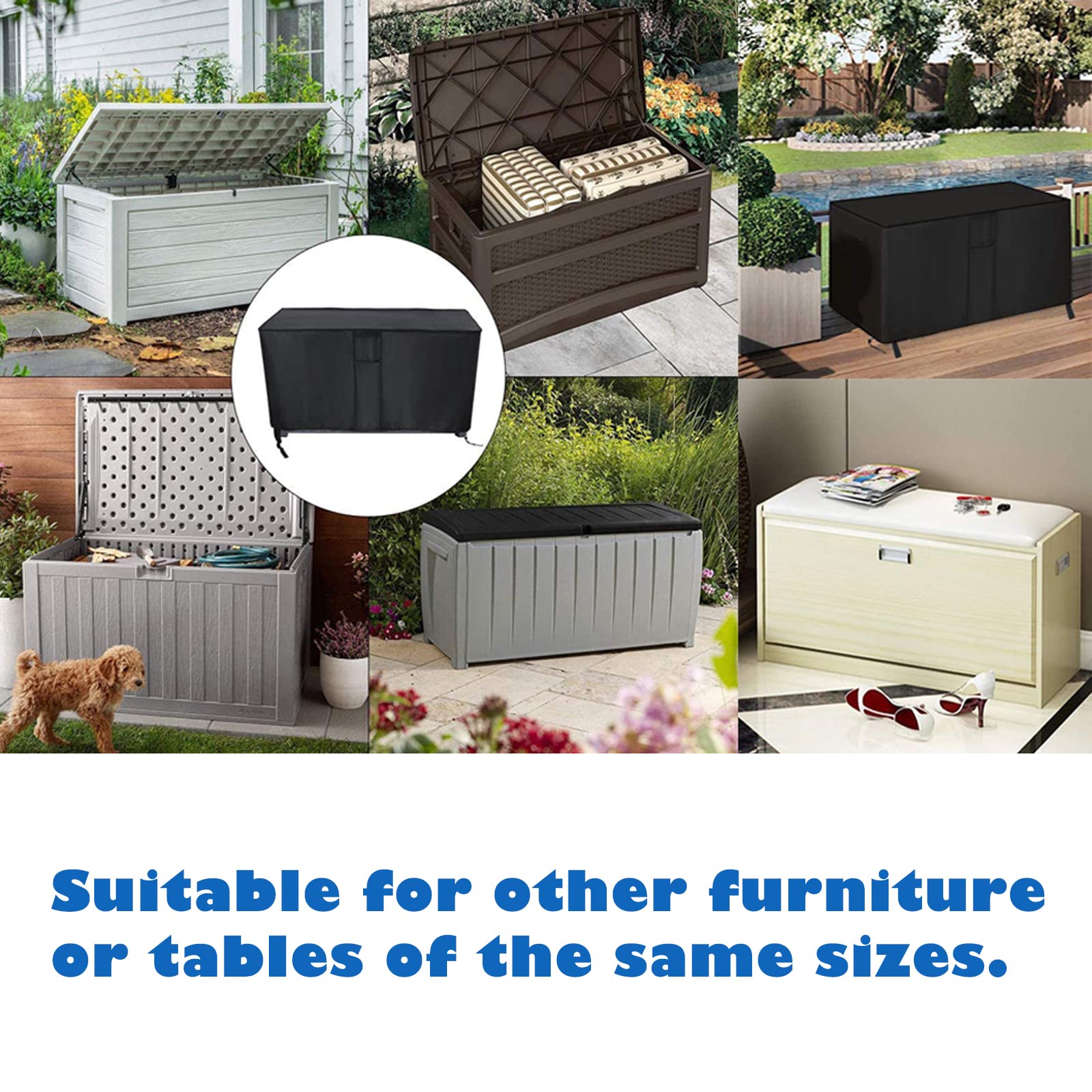 Jeffergarden Housse De Protection Imperméable Et Robuste Pour Coffre De Terrasse Et Bancs De Rangement Exterieurs Noir 92155907 Housse Imperméable élastique Housse De Protection Pour Coffre De Terrasse Extérieur Avec Fermeture Eclair Impermeable Pour Rangement De Jardin Patio Petite Taille~p151375247 Protection Rangement Extérieur Lavable La housse flexible empêche les moucherons, la poussière et d'autres éléments extérieurs de pénétrer dans le panier de rangement, ce qui le rend idéal pour les garages et les maisons. Garde votre boîte de terrasse propre : capable d'être démontée et nettoyée, notre housse de coffre de terrasse est le moyen idéal pour maintenir facilement un espace extérieur immaculé, évitant les odeurs potentielles et l'accumulation de poussière. Il est largement utilisé pour les meubles d'extérieur, les outils de jardin, les coussins et d'autres articles. Dimensions parfaites : 130 x 60 x 71 cm et 158 x 76 x 69 cm. Convient pour couvrir votre coffre de terrasse de jardin et d'autres meubles de jardin Protection ultime : gardez votre coffre de terrasse résistant à l'humidité avec cette housse de haute qualité. Ceinture beige élastique large avec fermeture par anneau Fabriqué à partir de matériaux, y compris du polyester imperméable et une corde élastique pour un ajustement facile, il offre une durabilité toute l'année contre les intempéries. Design en corde élastique : avec une corde élastique, cette housse de boîte de rangement peut rendre votre boîte de rangement plus rangée et belle, et ajouter une couche de protection pour les boîtes de rangement de différentes tailles.