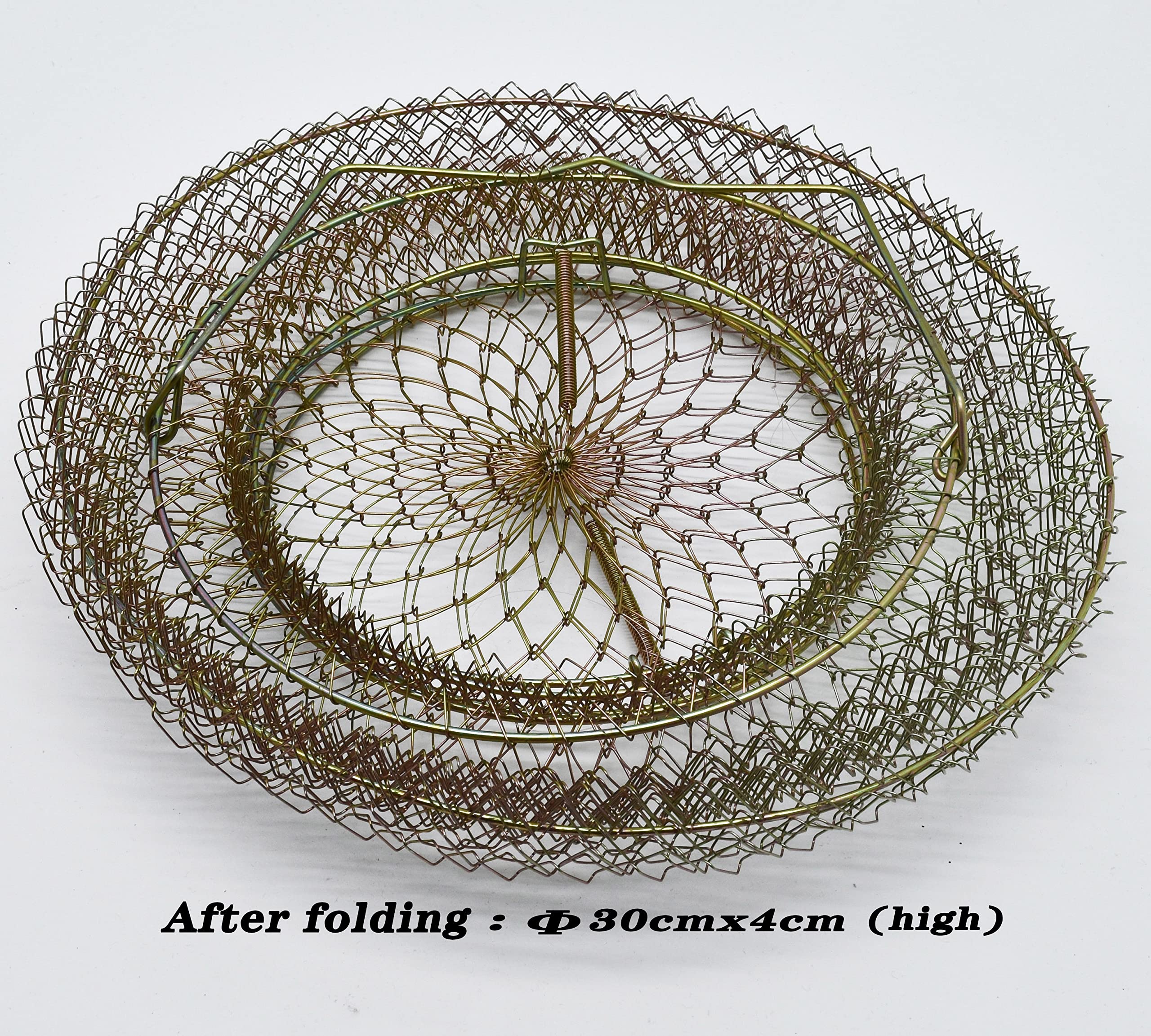 WEISGJA Panier De Cage De Pêche, Panier Pliable En Nylon Panier Pêche Crevettes Crabes 25cm Filet à Main De Pêche,Cage De Pêche Pliable En Fil D'acier,panier à Poisson Portable Pour Panier Anti-rouille Pêche Mer Longueur du panier : environ 40 cm , Couleur : doré Description : -- Matériau : acier., -- Couleur : doré. Longueur du panier : environ 40 cm. Achetez KBOLAE Panier à poisson pliable en fil d'acier pour crevettes et crabes 25 cm - Doré -- Couvercle facile à ouvrir vous permet de distribuer facilement vos prises. NO: 27368 Nom du produit: [Couleur 3-couche Sud Coréen Poisson Panier] Taille: Diamètre 25cm * Hauteur 65cm Tissu: Nylon La boucle vivante au bas du filet... Pliable et portable, pratique à transporter. Diamètre : environ 25 cm.
