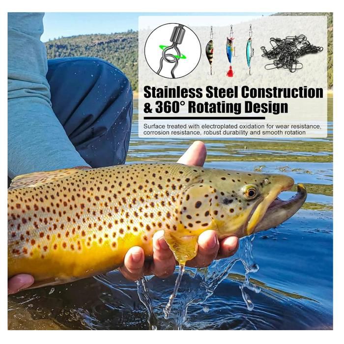 Connecteur d'accessoire de pêche pivotant à huit figures en acier inoxydable, avec forte Force de traction, accessoire de matériel de pêche, 100 pièces/lot Cette quantité importante répond à toutes les exigences d'utilisation. émerillon Pour Pêche En Mer Xyvor 100 Pièces Emerillon Peche, Émerillons De Pêche Haute Accessoire Pêche Mer Eau Douce De plus, leur conception chanfreinée minimise la résistance à l'eau pour une immersion plus rapide, ce qui en fait un accessoire de pêche idéal. Capacité de Charge Exceptionnelle: Émerillon Roulant Conçu pour résister à une pression importante sans se rompre, spécialement conçu pour la pêche à la carpe. Application Polyvalente: Les emerillon peche mer conviennent à divers scénarios de pêche, notamment la pêche à la ligne en eau douce et en eau salée, la pêche à l'appât, la pêche aux leurres, la pêche à la traîne à grande vitesse et la pêche en haute mer. Emerillon de pêche en cuivre - Magideal - 25 pièces - Pivotements à... Noeud Baril, noeud d'attache à un émerillon ou une agrafe, emerillon peche - cal Les tailles des emerillon peche carpe sont les suivantes : 4# (30mm), 6# (26mm), 8# (22mm), 10# (20mm), et 12# (18mm). Le mouvement fluide à 360° imite le mouvement naturel des poissons dans l'eau, attirant ainsi l'attention sur votre appât. Contenu de L'emballage: Vous recevrez 100 pièces de emerillon peche truite et une boîte de rangement transparente, comprenant cinq tailles au total, avec 20 pièces de chaque taille.