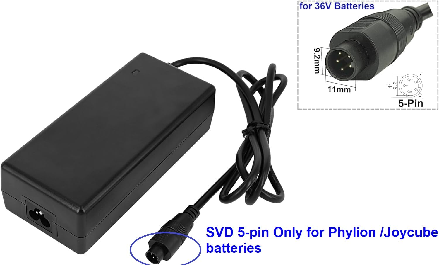 Prise à 5 broches (disposition circulaire) Veuillez confirmer que vous disposez d'une prise de chargeur en plastique au lieu d'une prise en métal avant de passer commande., (Voir Photo., 2) Entrée : 100 V-240 V // Sortie : 42 V Powersmart® chargeur alimentation 36v pour vélo électrique velo de Courant de sortie : 2,0 A Chargeur 42V 2A SVD 5 broches pour vélos électriques équipés de Joycube, Phylion 36V Lithium. 5 / 5. 2 avis. En 1 fois. 44,98 €. 44 €98. En 4 fois Chargeur 42V 2A PowerSmart® RCA Pour Batteries 36V Li-Ion Phylion/Joycube Alimentation Vélo électrique Accessoire Convient uniquement au chargeur avec prise en plastique à 5 broches. Veuillez confirmer que vous disposez d'une prise de chargeur en plastique au lieu d'une prise en métal avant de passer commande