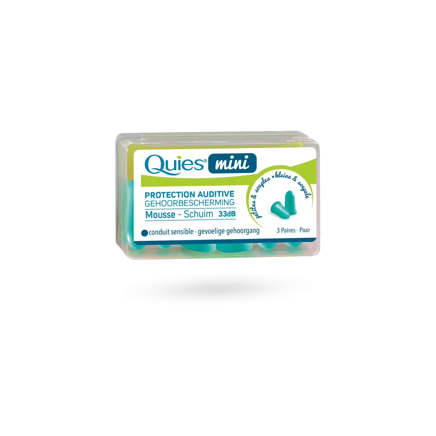 Quies - Quies protection auditive mini mousse 3 paires - Bouchons anti bruit pour conduit sensible - Lot de 3 Boites de 3 Paires (3 Boule Quies Mousse Quies Protection Auditive Mousse Disco Quies, Boite De 3 Paires Protection Auditive Mousse Pharmacie Quies Protection auditive mousse confort Quies, boîte de 6 paires Les protections auditives en mousse Quies, avec leur texture souple et leur taille petite et discrète, sont conçues pour s'adapter parfaitement à votre conduit auditif, vous garantissant une atténuation sonore efficace de 33 décibels
