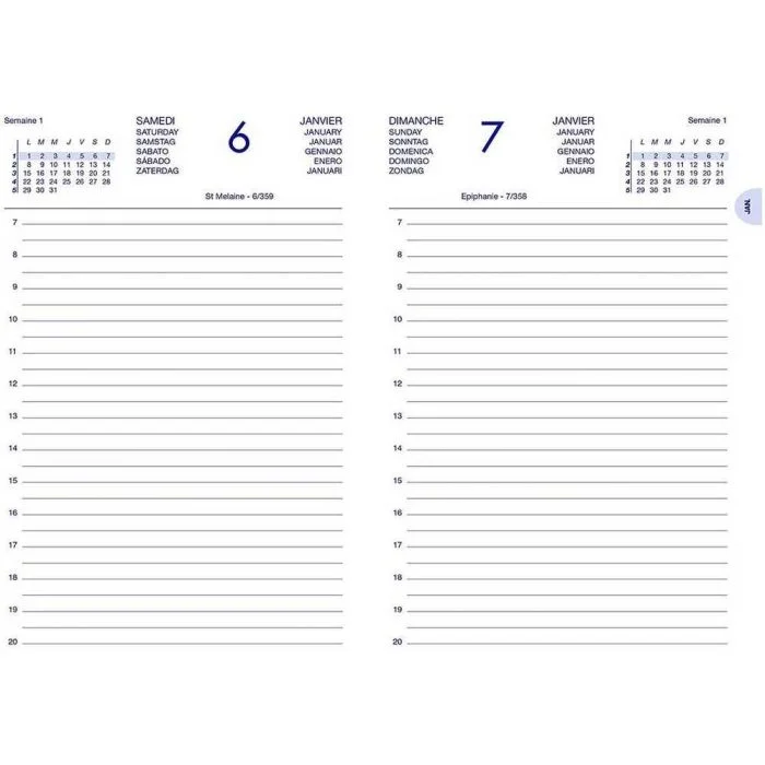 Avec 382 pages, il couvre 12 mois de janvier à décembre, offrant suffisamment d'espace pour la planification quotidienne, hebdomadaire et mensuelle. Agenda 2026 Journalier A5 – Une Page par Jour, Planificateur Quotidien et Mensuel Jan-Déc, Onglets Colorés, Porte-stylo, Couverture Rigide Élégante Bleu Nuit Son design quotidien offre suffisamment d'espace pour écrire vos plans, vos tâches et vos notes. Service après-vente : retombez amoureux de la planification avec cet agenda 2026 élégant et fonctionnel. Cet agenda est un outil essentiel pour augmenter la productivité, organiser efficacement les tâches, les rendez-vous et les objectifs personnels pour rester concentré toute l'année. Onglets latéraux codés par couleur et deux marqueurs facilitent la navigation et l'organisation. Agenda 2026 - Gestion du temps simple : idéal pour les étudiants, les enseignants et les professionnels. Une page par jour (week-end sur une page), de juillet 2025 à juin 2026. Dedans : calendriers annuels/mensuels, pages contacts, objectifs, autocollants, marque... Comprend des onglets mensuels à code couleur, deux rubans marque-page et une poche arrière pratique pour faciliter l'organisation. Agenda A5 2026 - Tissu Marine | Papier Tigre Agenda Cuir Synthétique élastique Porte-stylo Agenda 2026 Journalier De Janvier à Décembre 2026 Avec Onglets Mensuels Couverture Rigide Onglets Colorés Agenda 2026 – Planification quotidienne simple : restez à jour avec une page par jour, ainsi que des vues mensuelles pour une référence rapide des mois passés, présents et futurs. La fermeture élastique et le porte-stylo intégré rendent cet agenda compact idéal pour une utilisation à la maison, au travail ou aux études. Comprend une garantie de remboursement de 60 jours pour votre tranquillité d'esprit. Agenda journalier 2026 - Planificateur élégant avec des bords colorés vibrants pour une expérience unique. Papier premium 100 g/m² qui empêche le transfert d'encre.