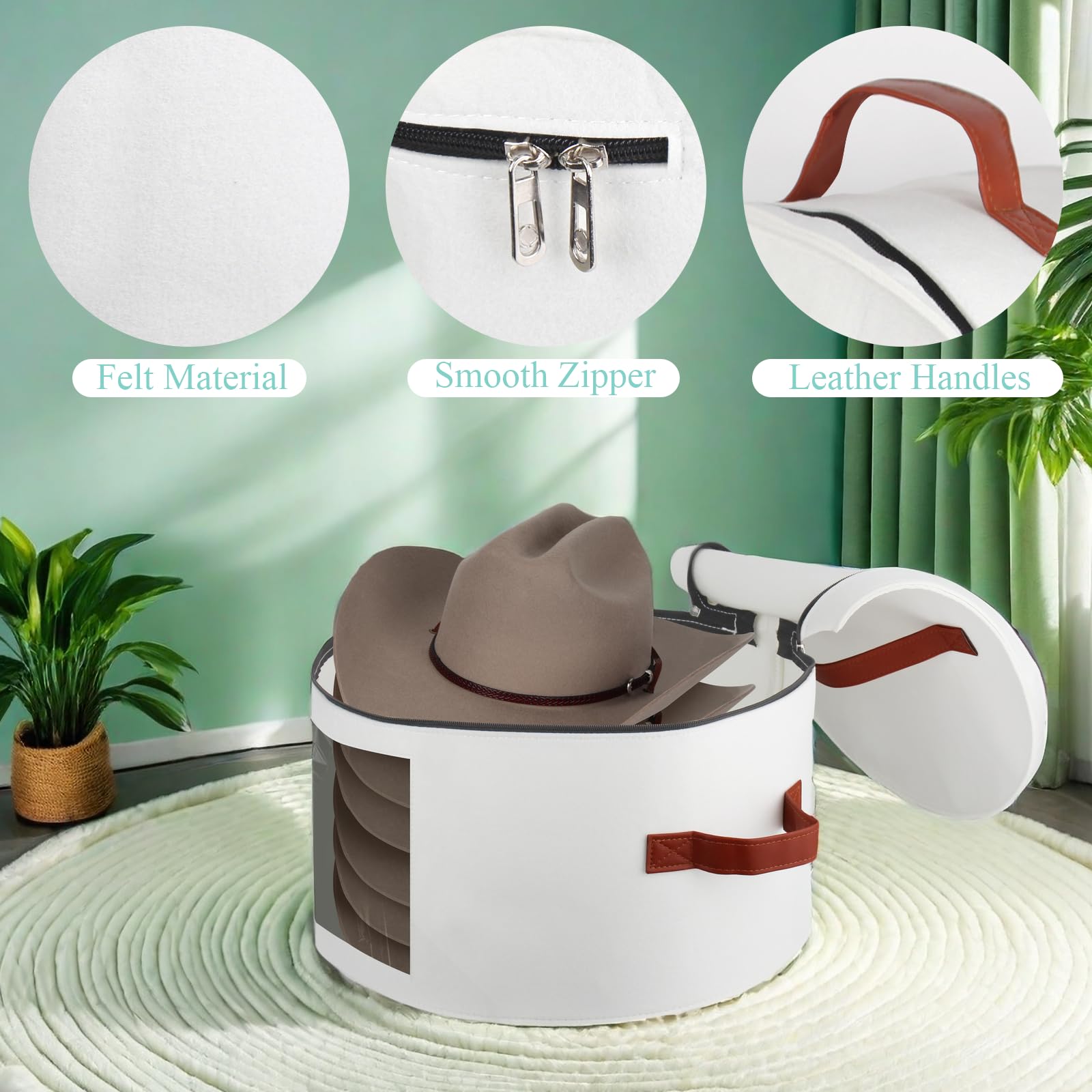 Plus besoin de fouiller dans les boîtes ou de perdre du temps à chercher le chapeau parfait. La fenêtre transparente sur le devant de la boîte à chapeau de cowboy permet une visibilité facile et un accès rapide à votre collection de chapeaux. L'organisateur de chapeaux pour placard est facile à ranger et à transporter et ajoute une touche décorative élégante. Si vous êtes un amateur de chapeaux, alors cette boîte à chapeaux est votre essentiel pour la maison. Son design élégant et fonctionnel en fait un complément parfait à n'importe quel placard, chambre ou dressing. Discover the perfect way to store your hats with our innovative travel hat box and organizer, designed to keep your headwear collection safe and well-organized. This spacious hat holder measures 17 inches in diameter and 11 inches in height, providing ample space for various hat styles and sizes Boite Ronde Avec Couvercle Boîte Rangement Chapeau Cowboy Rangement de chapeaux grande capacité : Avec des dimensions de 43,2 x 25,4 cm, les boîtes à chapeaux pour femme offrent suffisamment d'espace pour accueillir différents styles et tailles de chapeaux. L'organiseur de rangement simple et élégant pour chapeau rond est une bonne aide lors de votre voyage. Feutre amélioré : Fabriquée en feutre de haute qualité, l’étui pour chapeau de cowboy offre une protection améliorée pour vos chapeaux contre la poussière, l'humidité et d'autres dommages potentiels, et est durable. En résumé, les boîtes à chapeaux avec couvercles sont un incontournable pour les amateurs de chapeaux et les amateurs de mode. Sac De Rangement Transparente XYTZHSAI Sac De Rangement Transparent Pour Chapeaux, Peut Contenir Jusqu'à 7 Casquettes, Organisateur De Chapeaux De Cowboy, Organisateur De Chapeaux De Cowboy Rond, Boîte Pliable à Large Bords Petits prix et livraison gratuite dès 25 euros d'achat sur les produits SHWWQUE. Commandez Boîte de rangement pour chapeaux, étui de chapeau de cowboy/à bords large pour voyage, organiseur de placard pour peluches (gris Doté d'un design empilable, le rangement de chapeau de cowboy permet une organisation facile et un gain de place. Non seulement elle permet de ranger des chapeaux de différents styles et tailles, mais elle peut également être utilisée pour organiser des écharpes, des gants et d'autres accessoires. Parfait pour ceux qui ont une collection de chapeaux en pleine croissance ou un espace de rangement limité. L'aspect frais et propre du matériau ajoute une touche d'élégance à votre espace de rangement. Avec cette boîte à chapeaux pour les voyages, vous pouvez facilement choisir et mettre en valeur vos chapeaux préférés. Les boîtes à chapeaux avec couvercle sont parfaites pour le rangement de la maison, la décoration de la maison et les voyages.