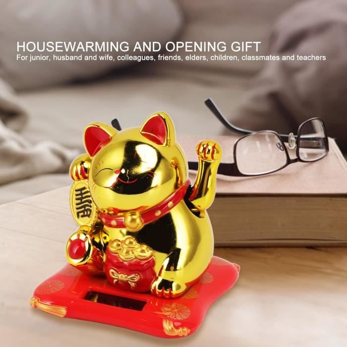 Figurine Chat énergie Lumière Maneki Neko Chat Porte-Bonheur Solaire - Bras Agitant Automatique - Décoration Bureau, Voiture Ou Maison - Cadeau Symbolique Statuette Japonaise Objet Chance Mouvement Automatique 【Décoration】 pour différents décorations, tels que les bureaux, l'intérieur de la voiture ou la décoration générale. Ce chat portant un collier orné d'une clochette est assis sur un coussin rouge et tient une pièce dans une patte et lève l'autre. Porte-t-il réellement bonheur ? En tout cas, ce qui est certain, c'est qu'il a un effet apaisant et s'accorde très bien dans un intérieur zen Le récepteur solaire convertit la lumière en énergie de mouvement, ce qui permet aux bras du chat de bouger en continu sans avoir besoin de piles. Artisanat méticuleux Fonctionne à l'énergie solaire : cette décoration en forme de chat porte-bonheur est équipée d'un récepteur solaire qui convertit l'énergie lumineuse en énergie de mouvement, permettant aux bras du chat de se balancer en continu. C'est également un excellent anniversaire. Chat Kawaii à énergie Solaire Qui agite, Chat Chinois, Porte-Bonheur Japonais, pour la Richesse Artisanat méticuleux : le chat dispose d'une finition méticuleuse, avec des descriptions délicates et vives du sourire du chat, des pépites d'or et des lingots. Caractéristiques : * Fabriqué en plastique de haute qualité, ne vieillit pas facilement. * Le récepteur solaire convertit l'énergie lumineuse en énergie de mouvement, permettant aux bras du chat de se balancer en continu, et il est respectueux de l'environnement et ne nécessite pas de piles. Contenu de l'emballage : 1 x chat porte-bonheur * Joint côté chat, finitions soignées. La main droite du chat se déplace de haut en bas signifie gagner de l'argent, ajoutant une touche de charme à n'importe quel espace. Mignon et fidèle : avec une jolie forme de chat, cette décoration symbolise la fidélité et le bonheur. * En forme de chat mignon, fidèle et plein de bonheur, la main droite se déplaçant de haut en bas signifie gagner de l'argent.