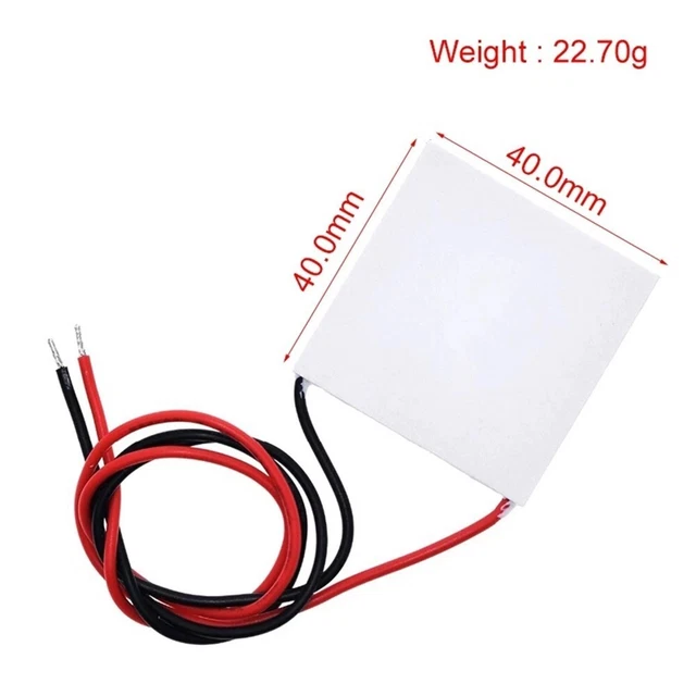 Courant de travail: = 5 (lorsque la tension nominale commence) TEC1-12705 / Peltier, 40x40x3,5mm max.12V/4A, 45W (VARIOUS) - - Elektronikai alkatrész kis- és nagykereskedelem Refroidisseur thermoélectrique Peltier (TEC1-12705) – TEC1 12705. Caractéristiques Modèle de puce: TEC1-12705 L'erreur de mesure permis est de +/- 1-3 cm. TEC1 12705 Module de refroidissement thermoélectrique Peltier 12 V 1 pièce élément de refroidissement compact à semi-conducteurs pour refroidissement du processeur, réfrigération portable et contrôle TEC1-12705 Module de refroidisseur thermoélectrique Peltier... Résistance interne: 2,4 ~ 2,7 ohm (température 23 + / - 1 ℃, test 1kHZ Ac) ISTOVO Tension nominale: DC12V (Vmax: 15., 5V)Puissance de refroidissement: Qcmax 45WPression d'assemblage: 85N / cm2Environnement de travail: plage de température -55 ℃ ~ 83 ℃ (température trop élevée affectent directement l'efficacité de refroidissement)Processus d'encapsulation: joint en caoutchouc de silicone 704 standard tout autourCouleur: blancMatériel: semi-conducteurTaille: 40 x 40 x 3,8 mmContenu de l'emballage:1 x refroidisseur thermoélectrique PeltierSeul le paquet ci-dessus, les autres produits ne sont pas inclus. Refroidisseur Thermoélectrique TEC1-12705 Refroidisseur Peltier Indispensable Pour CPU - Test Et Avis élément Peltier Pour Refroidissement