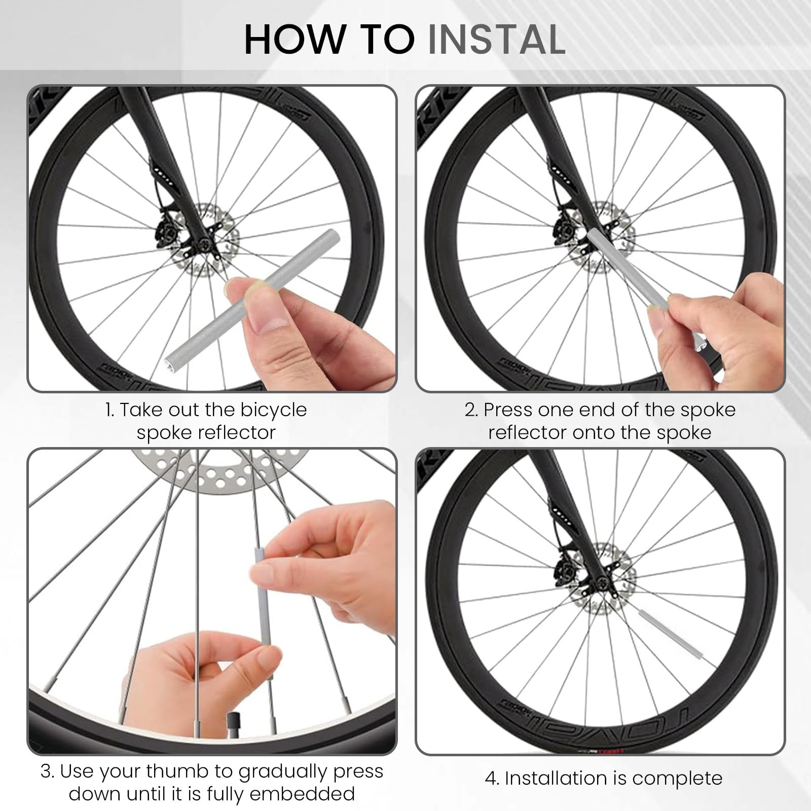 Les réflecteurs de rayons sur les réflecteurs de vélo augmentent la sécurité de conduite et réduisent le risque d'accidents de la route. Les réflecteurs peuvent également être utilisés sous la pluie Haute visibilité à 360° : les rayons réfléchissants des roues de vélo offrent une réflexion à 360° et améliorent la visibilité latérale, garantissant une conduite sûre dans l'obscurité et par mauvais temps Roue de velo de la bicyclette velo 72pcs rayons reflecteur Clip Tube... Liste de colisage : Le réflecteur à rayons est conçu pour avoir une longueur de 80 mm et un diamètre extérieur de 5 mm. Reflecteur Rayon Velo Réflecteurs Rayons Vélo USENG - Lot 72 Pièces, Visibilité 360°, étanches Accessoire Trottinette Electrique Les réflecteurs de rayons de vélo sont livrés en paquets de 72 et s'adaptent à tous les rayons ronds traditionnels. Il suffit de le clipser sur les rayons, de le fixer à la même hauteur et vous êtes prêt à rouler en toute sécurité dans l'obscurité. Autocollant Reflechissant 48 Pièces Réflecteurs De Rayons 360° Visibilité Et Montage Facile Catadioptres, Réflecteur De Roue De Bicyclette,Tube De Bande D'avertissement De Rayons Inclus 2 Autocollants Réflecteurs Catadioptre Velo Haute visibilité à 360° : les rayons réfléchissants des roues de vélo offrent une réflexion à 360° et améliorent la visibilité latérale, garantissant une conduite sûre dans l'obscurité et par mauvais temps. Matériaux de haute qualité : Les réflecteurs de rayons de vélo sont fabriqués à partir de tubes ABS de haute qualité et d'un revêtement réfléchissant 3M, vous offrant une bonne adhérence et une bonne visibilité dans l'obscurité ou dans des conditions de faible luminosité. Les réflecteurs de vélo sont fermement collés aux rayons de votre vélo et ne se détacheront pas.