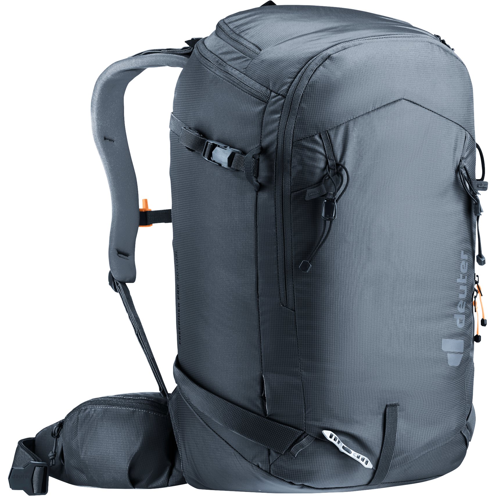 FONCTIONNALITÉ COMPLÈTE : Avec ce sac à dos d'hiver, tu as toujours ton équipement à portée de main. Des sangles escamotables permettent de fixer en toute sécurité la corde, les skis ou le snowboard. Même si le sac à dos est plus haut, l'espace pour la tête reste intact, ce qui offre un confort supplémentaire. Sur le côté se trouve également une fixation pour les bâtons ou les piolets. L'extension de volume dispose de sangles escamotables pour fixer et comprimer le bagage ainsi que pour fixer la corde. Sac à dos de randonnée ski Freerider Lite 20 Deuter Une corde peut être fixée sur le haut du sac à dos. Les skis peuvent en outre être fixés sur le côté ou en diagonale du sac à dos de randonnée à ski, le snowboard ou les raquettes à neige sur le devant. Sac à dos de randonnée ski Deuter FREERIDER 30 Sac Randonnée Ski Deuter Freerider Pro 32+ SL Black Sacs à Dos Ski/snowboard Système Dorsal LiteSnow Anti-neige ACCESSIBILITÉS OPTIMISÉES : Grâce à la grande ouverture dorsale, un accès rapide au compartiment principal est garanti. La grande ouverture dorsale permet un accès rapide au compartiment principal. Le Deuter Freerider Pro 30 10 SL est un sac à dos de ski pour femmes, alliant légèreté, ergonomie et organisation intelligente. Son système LiteSnow et ses multiples options de fixation en font un compagnon idéal pour vos sorties freeride ou backcountry La raison : le design qui repousse la neige et les matériaux sélectionnés. Ton casque de ski trouve sa place dans le filet à casque amovible si tu ne l'utilises pas. Le système dorsal LiteSnow offre un grand confort pour un faible poids et empêche l'adhérence de la neige et l'absorption de l'humidité grâce à un design et des matériaux innovants. Poids : 1000 g | Dimensions : H 56 x L 33 x P 18 cm