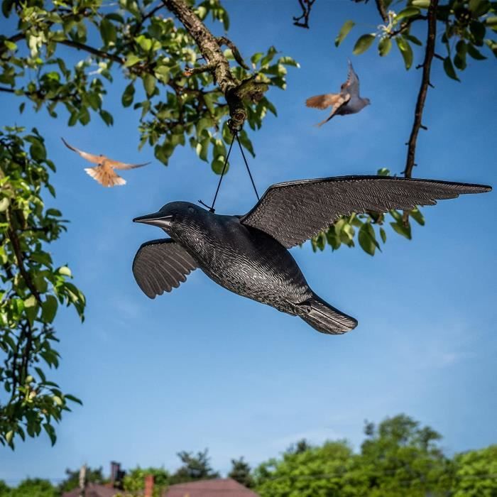Noir Corbeau de Jardin Anti-Pigeon, Lot de 2, décoration épouvantail Corbeau Noir Imitation Prédateur Oiseaux KADAX Corbeau Noir En Plastique, Épouvantail Efficace Pour Repulsif Pigeon Balcon Anti pigeons pour balcon est équipé d’une corde de suspension, pouvant être accroché à des branches ou d’autres structures, ou simplement posé dans la zone souhaitée. PLASTIQUE DE HAUTE QUALITÉ, RÉSISTANT AU VENT ET AU SOLEIL : Repulsif corbeau / oiseau effaroucheur est fabriqué en plastique de haute qualité, robuste et durable. APPARENCE RÉALISTE, RÉPULSION EFFICACE : Epouvantail pigeon / épouvantail à oiseaux adopte une conception réaliste de corbeau avec les ailes déployées, imitant fidèlement l’apparence réelle, déclenchant l’instinct de peur des oiseaux pour repousser efficacement les pigeons, moineaux, rouges-gorges et autres espèces. Merles, moineaux, pigeons : beaucoup d'oiseaux aiment déguster les fruits, salir les rebords de fenêtre, les toits et les chemins. Dites adieu à ces hôtes indésirables avec ce lot de 2 corbeaux noirs en plastique. Cet authentique répulsif à oiseaux est résistant au vent et aux intempéries SÉCURITAIRE ET ÉCOLOGIQUE, SANS DANGER POUR LES OISEAUX : Ce epouventaille pour oiseaux / rapace effaroucheur utilise une méthode physique de dissuasion en imitant les prédateurs naturels. EN STOCK : Corbeau en plastique anti pigeons pas cher. Grand choix, promos permanentes et livraison rapide partout en France. Paiement sécurisé Sans produits chimiques ni dispositifs sonores, il est sans danger pour les oiseaux, écologique et idéal pour un usage domestique à long terme. Il résiste aux intempéries telles que le soleil, la pluie et la neige, assurant une utilisation extérieure à long terme sans dommage.