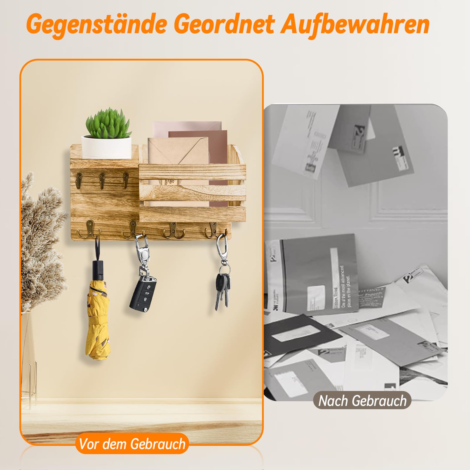 Bois de fer de haute qualité : Fabriqué en bois et métal de haute qualité, boite a clef decorative est robuste et résistant à l'usure. Porte-clés mural en bois, support à clés décoratif et organisateur de courrier avec 6 crochets à clés, mural avec étagère pour salon et entrée ; Livraison · 9,19 Étagère de 11 cm de profondeur Étagère profonde offrant plus d'espace pour exposer et ranger de petits objets. Sa surface soigneusement travaillée est lisse et sans bavures, garantissant longévité et protection de vos vêtements Une notice d'installation est fournie pour vous guider étape par étape. Installation facile : Ce porte-manteau s'installe facilement sur un mur ou une planche de bois. 7 crochets avec étagères : Porte cle mural à 7 crochets offre un espace généreux pour suspendre divers objets tels que manteaux, chapeaux, écharpes et sacs à dos. Porte-clés Mural Bois 6 Crochets - Organisateur Entrée Avec Étui Courrier Style Vintage 6 Crochets Vintage Son design mural permet de gagner de la place dans les petits espaces comme les chambres, les entrées et les salles de bain, optimisant ainsi l'espace pour un intérieur plus propre, plus confortable et une esthétique soignée 100 % bois naturel Fabriqué en bois naturel massif. Pratique, il apporte également une touche de charme et de chaleur décorative. Porte-manteau mural en bois design rétro scandinave nordique HÊTRE avec 6 CROCHETS en bois... Organisateur Courrier Clefs Décorations Comius Sharp Porte Clef Mural, Porte-Clés Mural En Bois, Noir Porte Courrier Mural, Avec 4 Crochets à Clé Doubles, Pour Salon, Salle De Bain, Cuisine, Les Entrées, Couloirs Boite A Clef Decorative Chaque porte-manteau mural et porte-clés est doté d'une étagère de 30 x 10 cm, idéale pour exposer décorations, cadres et plantes.