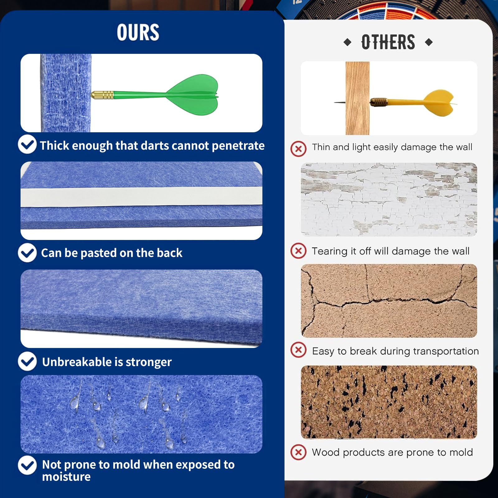 Spécification : - Matériau : feutre - Contenu de la livraison : 6 protections murales autocollantes pour cible de fléchettes., - Coloris : noir. Jeux - Jouets - Découvrez notre offre Protection murale de cible de fléchettes autocollante - Bordure murale épissée - Pour cible de fléchettes - Dos de cible en feut145 Caractéristiques du produit : 1., Matériau de haute qualité : cette cible de fléchettes est fabriquée en feutre, durable et léger, le matériau de protection de cible de fléchettes en feutre est inodore et sûr à utiliser., 2., Installation et retrait faciles : ne vous inquiétez pas des opérations compliquées - ce film de protection mural en feutre pour cible à fléchettes est recouvert de colle à l'arrière et ne nécessite aucun outil supplémentaire pour l'installation. Taille universelle pour une protection optimale : la taille d'une seule protection murale de cible est de 30 cm x 30 cm et convient aux cibles de taille standard. La surface en feutre protège également les pointes des fléchettes contre l'usure et l'usure. Feutre Noir 30x30cm Facile Installation Cible De Fléchettes En Liège - Protection Murale, Anneau De Capture Avec Cible En Véritables Bouchons De Vin Protection De Fléchettes Faite à La Main - France Protection Cible Flechette Protection murale pour cible de fléchettes : vous recevrez 6 protections murales carrées autocollantes pour cible. Idéal pour une utilisation rapide et facile. Protection améliorée : notre protection murale pour cible de fléchettes offre une protection fiable et robuste pour vos murs contre les fléchettes perdues. Nos protections murales pour cible de fléchettes sont fabriquées en feutre noir, durables et offrent une protection complète pour votre mur. Horloge Murale Cible, 30 cm : Atteignez le Centre de la Ponctualité Notre protection murale pour cibles de fléchettes offre une protection fiable et efficace pour vos murs. Cible Fléchettes BULL'S Lightning