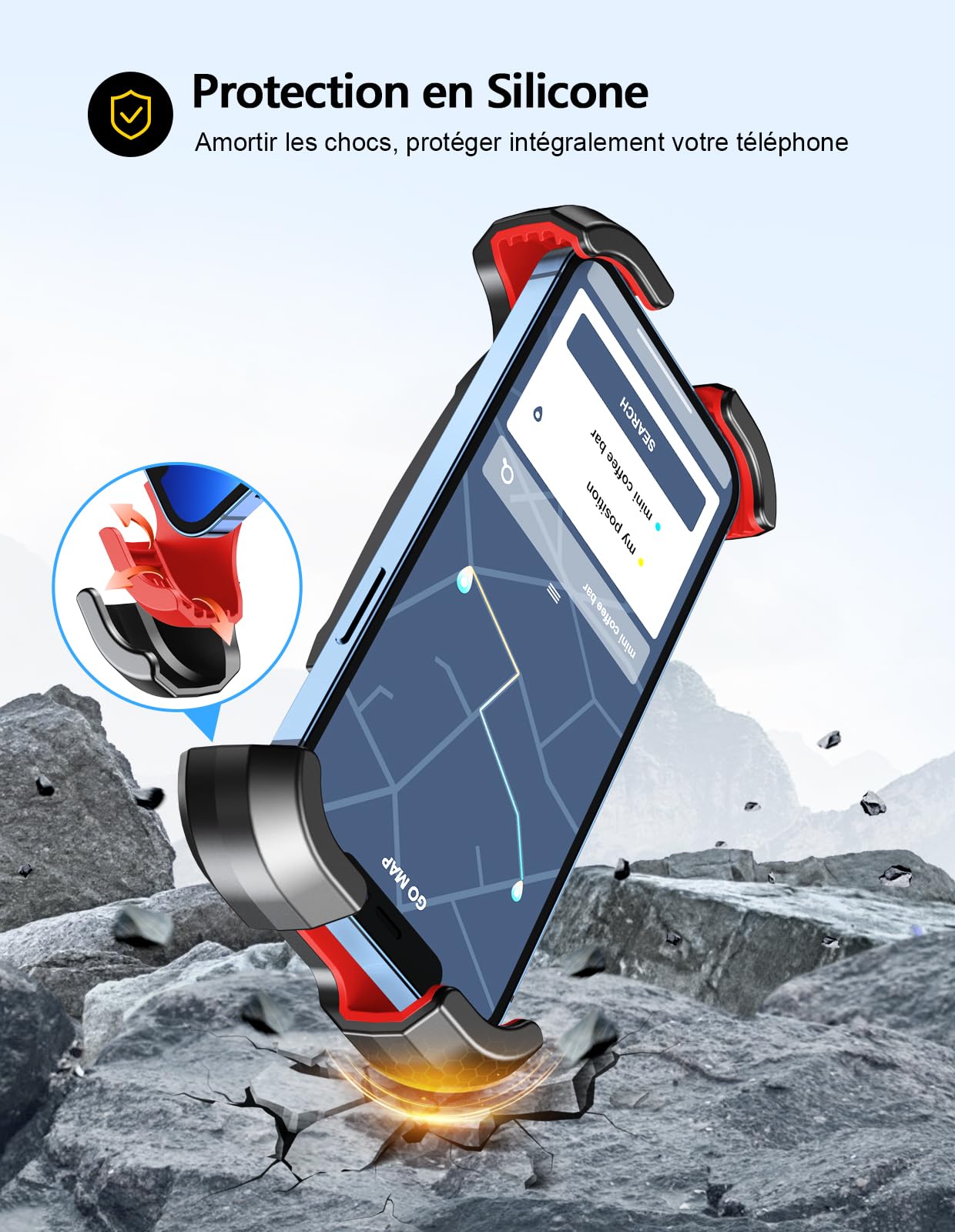 Supporto Telefono Moto Support Téléphone Vélo Et Moto Universel - Rotation 360° Anti-vibration | Compatible Smartphones 4.7-6.8 Pouces Support GPS Cyclisme Accessoire Moto GPS Téléphone Support Téléphone Moto Etanche BTNEEU Support De Téléphone Pour Moto, étanche, Rotatif à 360 Support Téléphone Scooter Fixation Guidon Universelle Parfait pour vélo, moto, VTT, scooter ou poussette, c'est l'allié indispensable de vos déplacements. Des joints d'étanchéité et des rainures spéciales créent un espace protégé pour votre smartphone, même sous la pluie – idéal pour toutes les conditions météo Robuste & Anti-vibration & Rotation à 360°: Le support moto telephone associe plastique ABS résistant et silicone anti-vibration pour une protection maximale. Le Support de téléphone Moto Étanche ou le Support téléphone moto coque étanche et charge rapide garantissent que votre téléphone reste au sec et fonctionnel, même sous la pluie Sa rotule robuste permet une rotation à 360°, tandis que la base antidérapante assure une fixation stable – parfait pour la navigation et les appels. La rotule à 360° permet d'ajuster l'angle parfait pour consulter votre GPS ou changer de musique en route. ... Testé en conditions réelles - votre téléphone ne... Large Compatibilité: Ce equipement moto universel convient aux smartphones de 4,7 à 7 pouces et aux guidons de 22-28 mm. La sensibilité optimale reconnaît chaque toucher et prend en charge Face ID/Touch ID, gardant le contrôle total de votre appareil en mouvement.