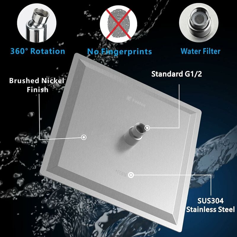 Caractéristiques: Matériau : Fabriqué en acier inoxydable, avec finition chromée. Achetez Pomme de douche à effet pluie en acier inoxydable - Grand pommeau de douche carré avec finition chromée (50 x 50 cm Couleur : Argent (comme illustré). 【 】 tendance style moderne de beauté, semble vraiment élégante et délicate, fantaisie look carré forme rectangle, polies, monocoque, ultra fin. Très facile à déboucher les blocages, rien de plus ennuyeux. ECD Germany Ensemble De Douche à Main, Set Pomme De Douche à Effet Pluie, En Acier Inoxydable Noirargent Carre Buses Anti Calcaire Set Pomme De Douche Et Tete De Douche Pluie Pour Salle De Bain 56442489 Taille : environ 40 x 40 cm, 50 x 50 cm ( en option). 【 】 rotatif dispose d'un adaptateur pivotant qui vous permettra de régler la direction de la tête de douche un peu comme vous le souhaitez lors de son utilisation. 【 précipitations style 】 peuvent être utilisés pour salle de bain parfaitement dans votre domicile ou à l'hôtel, offrant une bonne couverture de tremper votre corps tout entier, vous pouvez faire merveilleux pour le bain avec la pomme de douche. Merci de votre compréhension., 2., La couleur de l'article réel peut varier légèrement de l'image affichée en raison des différents paramètres du moniteur. Pommeau de douche effet pluie, 12 pouces, acier inoxydable 304 carré Le produit réel est décisif. Matériau : notre pomme de douche est fabriquée en acier inoxydable avec une finition chromée durable pour une résistance maximale à la rouille et une longue durée de vie. Pour éviter les fuites, nous utilisons des joints en caoutchouc souple.PURSURISATION DE L'AIR ET ÉCONOMIE D'EAU : La technologie innovante de jet d'air offre une douche toujours puissante même à faible pression d...