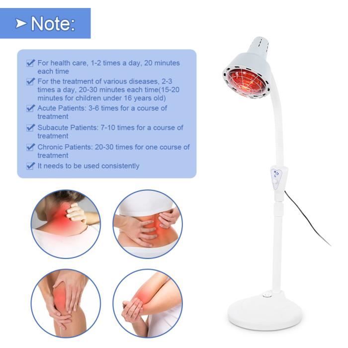 Processus : revêtement par pulvérisation. Avec une courbure arbitraire à 360 ° de la tête de la lampe et deux supports réglables, il répond entièrement à vos besoins thérapeutiques. Il peut être utilisé pour les adolescents, les adultes, les personnes âgées et les athlètes, ainsi que pour les patients souffrant de douleur et est également un cadeau attentionné pour les parents et Détails : Câble d'alimentation long : livré avec un câble d'alimentation de 5,91 pieds de long, de sorte que vous avez assez de longueur libre pour y accéder facilement. Zone de traitement agrandie : il est possible de régler la hauteur et l'angle de la tête de la lampe (360 °) par ses bras et joints, ce qui peut fournir la commodité dans le traitement des différentes parties et l'augmentation de la zone de traitement Matériau de haute qualité : la lampe infrarouge est fabriquée en fer de haute qualité avec revêtement en spray, qui est plus solide et plus durable et a une plus longue durée de vie Fargau Infrarouge Noir Avec Pince-Appareil De Thérapie À Lampe Infrarouge 150w, Chauffage Lampe Led Rouge Infrarouge 150w Support 360 Degrés Longueur du câble d'alimentation : 1,8 m. Lorsque vous êtes assis sur le canapé ou allongé sur le lit, il suffit d'allumer l'interrupteur et de placer cette lampe infrarouge à côté de vous Ampoule infrarouge : utilise du verre optique épais de haute qualité, et traité par un traitement antioxydant, qui ne se décolore pas et a une forte transmission de la lumière, et une lumière uniforme et douce. Dimensions de la tête de lampe: 13 x 13 cm Poids brut: 1,82 kg Poids net : 1,5 kg Dimensions du colis : 32,8 x 23 x 19 cm. La tête de la lampe peut être orientée à 360° et deux supports réglables permettent de répondre à tous les besoins thérapeutiques. Il peut être utilisé par les adolescents, les adultes, les personnes âgées et les athlètes, ainsi que par les personnes souffrant de douleurs Ce produit est fabriqué en fer de haute qualité avec revêtement en spray, qui peut être utilisé pendant une longue période. Spécifications: Matériel: Fer Couleur : noir. Rayon lumineux: dans 1m Support de lampe angle réglable : 360°. Culot standard : convient pour les ampoules à tête à vis E27, ce qui est très pratique pour le remplacement. Lampe infrarouge 150 W - Lumière rouge - Avec support réglable à 360 ° - Lampe chauffante pour lampe thérapeutique contre les douleurs articulaires, la relaxation musculaire et les soins de la peau Thérapie par lumière rouge pour appareil corporel, thérapie par la Type de lumière : lampe en céramique infrarouge (incluse)., Culot ampoule : E27., Type de fiche: norme UE Type d'interrupteur : bouton.