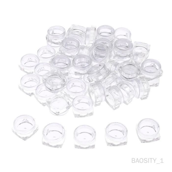 Caractéristiques du récipient : chaque récipient a un couvercle circulaire et une doublure pour former un joint étanche qui ne fuit pas. Matériau du récipient : boîte cosmétique, fabriquée en matériau plastique, résistant à la rupture et aux fuites. Vous pouvez les mettre dans votre poche, portefeuille, sac à main, sac à dos et bagages. Pot Vide Cosmétiques Lot De 16 Pots De Maquillage Vides En Très approprié pour remplir des cosmétiques de voyage, ou placer de petits accessoires, les récipients vides sont largement utilisés dans la vie quotidienne. Capacité : chaque pot de crème a un diamètre de 45 mm, une hauteur de 19 mm et une capacité de 15 ml. Excellente étanchéité Pot A Sauce Lawei Lot De 108 Pots Vides En Plastique Transparent Avec Couvercles Pot Plastique Avec Couvercle Bouteille,Pots en plastique transparent vides pour cosmétiques, boîte...