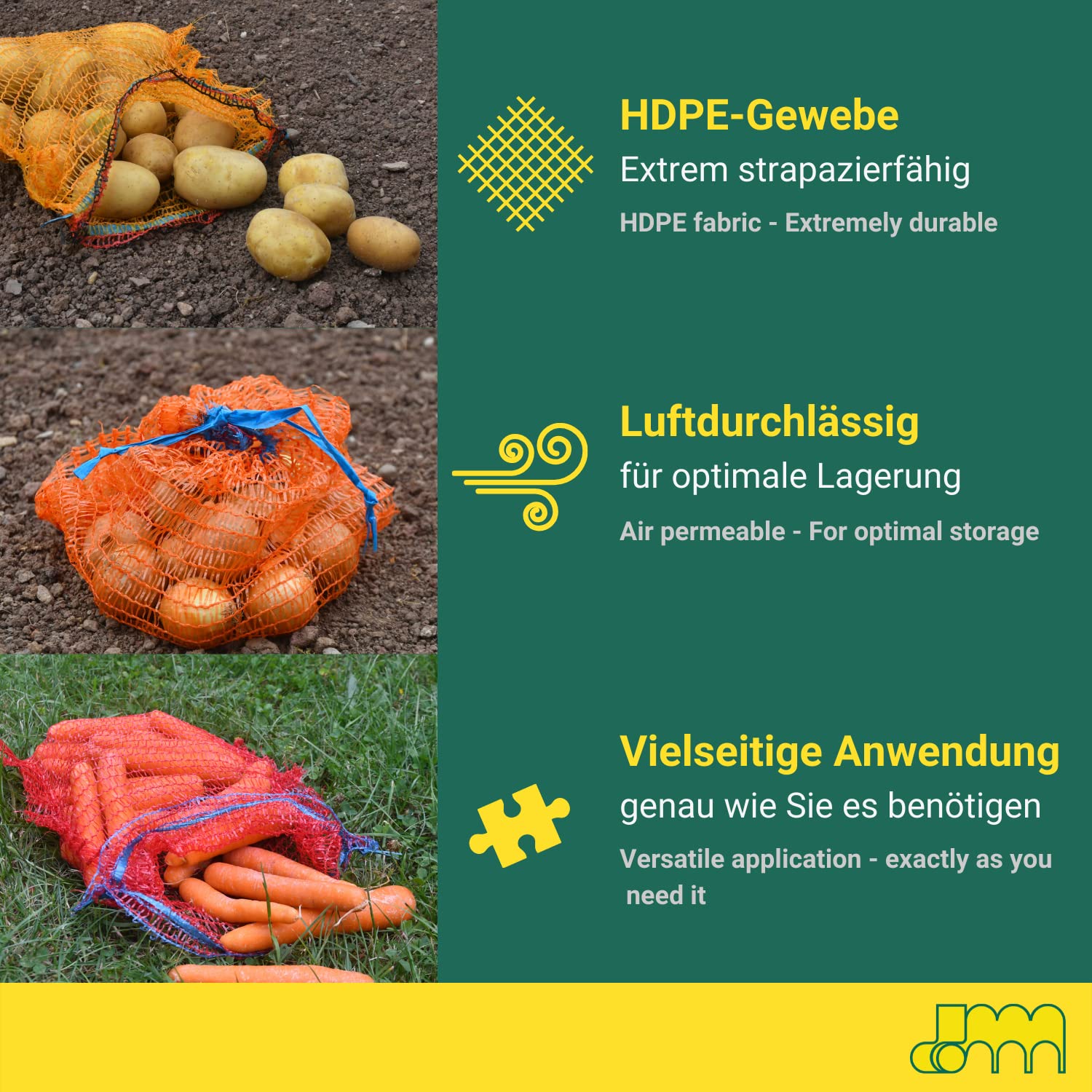 Cette respirabilité peut également aider à prévenir la croissance de moisissures et d'autres formes de détérioration, ainsi qu'à réduire le risque de contamination des aliments. En outre, ils peuvent être réutilisés plusieurs fois et sont généralement disponibles dans une grande variété de tailles et de couleurs, ce qui les rend parfaits pour les personnaliser selon les besoins du client. Nos sacs en filet raschel sont parfaits pour le conditionnement de produits tels que les pommes de terre ou les oignons, avec des capacités allant de 2,5 à 5 kg Ce lot de 100 sacs vous permettra d'emballer tous vos fruits et légumes en toute sérénité. Leur maille raschel en HDPE (high-density polyethylene) est incolore pour voir directement le contenu, et surtout hyper résistante Ils sont également très résistants et peuvent supporter beaucoup d'usure. Filet en maille pour divers fruits et l gumes 100 pi ces sacs de protection de Ils nécessitent généralement moins d'espace de stockage que les autres types de sacs et peuvent être chargés et déchargés rapidement en raison de leur flexibilité. Ils sont abordables, très respirants et peuvent être réutilisés plusieurs fois. Filet Rangement Oignons Pommes De Terre Sac à Mailles Raschel Pour Fruits Petits Sacs à Mailles Pour Filet Pour Fruits Et Oignons Respirant : un autre avantage des sacs en maille raschel est qu'ils sont très respirants, ce qui permet une meilleure régulation de la température à l'intérieur du sac et aide à maintenir la qualité des aliments. Ils sont très durables, flexibles et légers. Économiques : le principal avantage d'utiliser des sacs en maille Raschel est qu'ils sont relativement peu coûteux, en particulier par rapport à d'autres types de sacs en tissu.