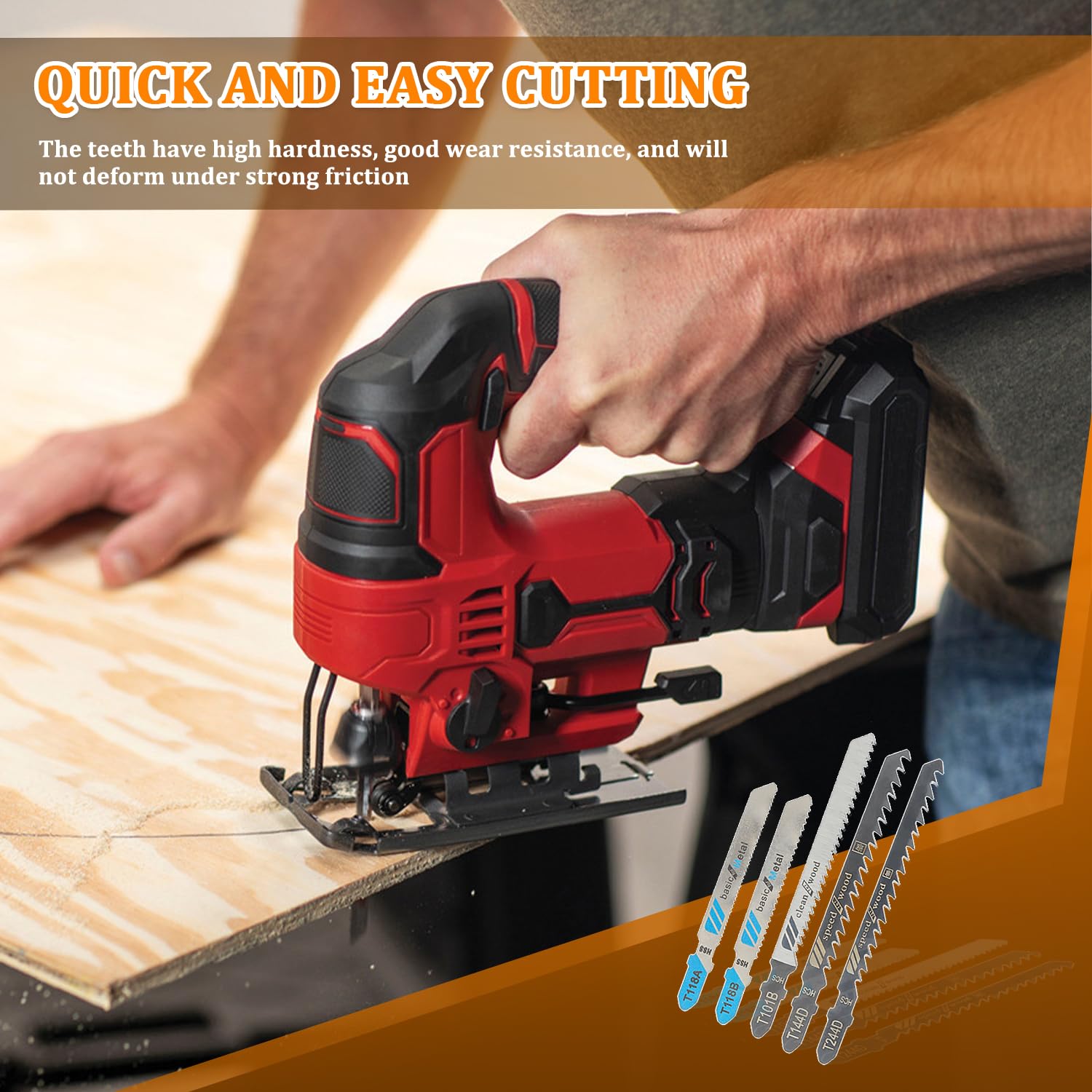 Fabriqué en acier à haute teneur en carbone HCS et en acier à haute vitesse HSS avec des dents trempées, ce jeu de lames de scie sauteuse est compatible avec la plupart des marques de scies sauteuses professionnelles, offrant les performances et la stabilité idéales pour vos travaux de coupe. Bien choisir ses lames de scie sauteuse est indispensable pour couper sans bavure un plan de travail, du parquet ou facilement des métaux tendres comme l'aluminium ou encore le plastique. Emmanchement, denture, longueur, acier HSS ou bimétal : des lames bois aux lames métal, nos conseils pour une coupe sans éclat La boîte de rangement est robuste et durable, avec des compartiments pour faciliter le transport et le stockage, et les lames de scie peuvent être rangées de manière sûre et ordonnée après utilisation et ne se perdent pas facilement. Compatible avec la plupart des marques et modèles de scies sauteuses professionnelles courantes, ce kit offre des performances et une stabilité idéales pour vos travaux de coupe. Le design compact facilite le transport. Lame De Scie Sauteuse YID Jeu De Lames De Scie Sauteuse 20 Pièces Lames De Scie Sauteuse Scie Sauteuse Makita Le design compact est facile à transporter. avec différents types de lames pour répondre aux différents besoins. Rangement Facile:La boîte de rangement fournie est robuste et dispose de compartiments pour faciliter le transport et le rangement. Le T118A pour une coupe facile du métal, le T118B pour une coupe rapide du métal, le T144D pour une coupe rapide du bois, le T244D pour une coupe rapide du bois et le T101B pour une coupe propre du bois sont disponibles pour vos différents besoins de coupe. Scie Circulaire Dewalt MILWAUKEE Lames De Scie Sauteuse à Tige Universelle TT455 (48-42-0850 Lame Scie Sauteuse Utilisez les lames de scie HCS pour le bois tendre, le contreplaqué et les panneaux de fibres et les lames de scie HSS pour le bois dur, le métal ou les plastiques renforcés, ainsi que pour les coupes de nettoyage, les coupes rapides, les coupes courbes et plus encore. Denture progressive combinant entame aisée (pas d’ondulation pour les tôles minces) et une grande capacité d’enlèvement de copeaux. 25 pièces