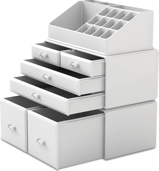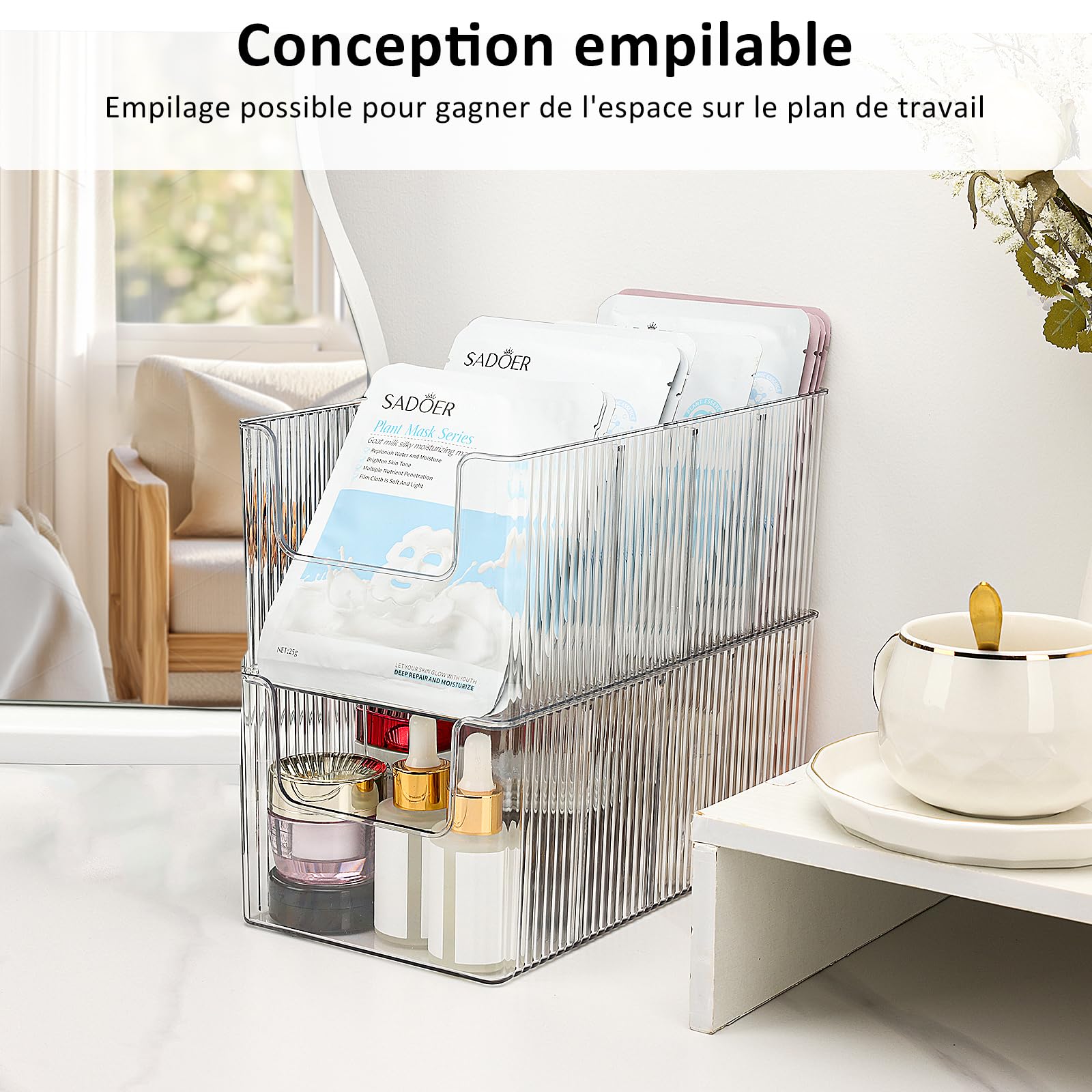 Durable et élégant : Fabriqué en PET de première qualité avec un design à rayures verticales, il ajoute de l'élégance à votre meuble de salle de bains ou à votre table de maquillage Dimensions parfaites : Mesurant 26 x 13,7 x 11 cm, cette boîte de rangement a la taille idéale pour organiser vos produits de beauté et les rendre facilement accessibles ; son design compact s'adapte parfaitement aux vanités de la salle de bain, aux tables de maquillage et aux comptoirs Forme en U et empilable : Le centre unique en forme de U permet d'accéder facilement aux articles, tandis que la conception empilable vous permet de doubler le stockage verticalement sans occuper d'espace supplémentaire sur le comptoir Rangement Pinceaux Maquillage JessLab Organisateur De Maquillage En Forme De U, Boîte De Rangement Cosmétique PET à 4 Compartiments Avec Diviseurs Amovibles, Design Empilable Pour Comptoir De Salle De Bain Et Bureau, 2 Pack Organiseur Maquillage Lot de 2 distributeurs de coton-tige pour boules de coton, pot d'apothicaire en coton avec couvercles pour rangement de bidons de salle de bain 22,82 € Livraison gratuite Organisateur de rangement cosmétique, organisateur de maquillage... JessLab Maquillage Organisateur, Pet Soins de la Peau Organisateur avec 5 Compartiment Beauté Stockage Maquillage Organisateur pour Le Bureau Armoire Salle de Bain Vanité Comptoirs, Gris