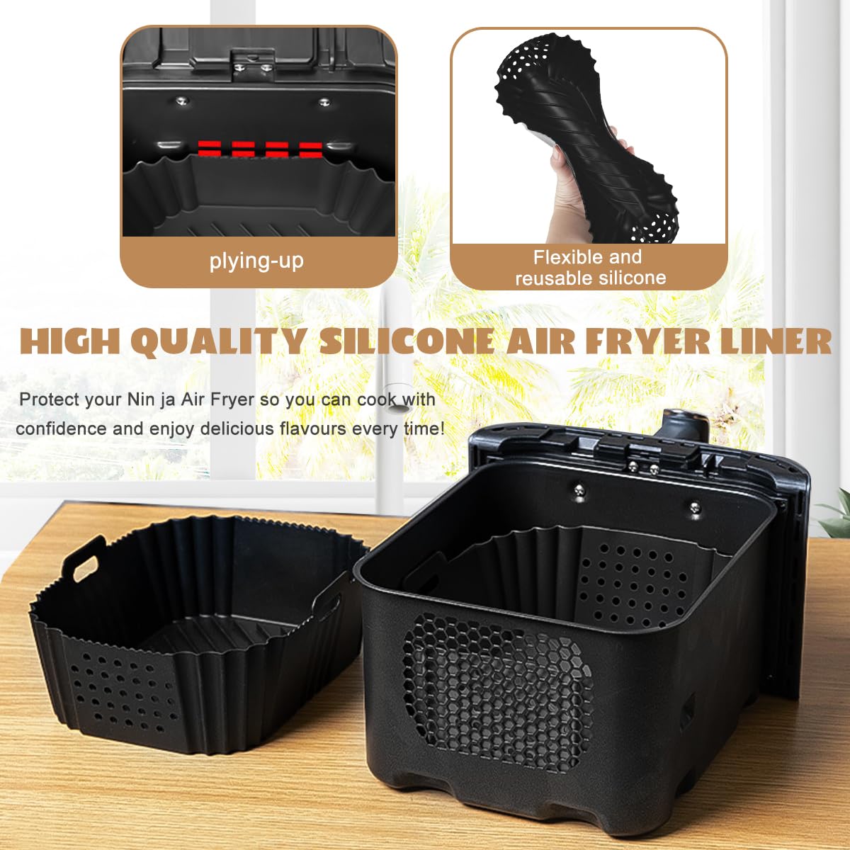 Lot de 2 paniers en silicone anti-adhésif pour SL400 SL401 - Inserts perforés conçus pour une cuisson uniforme et un transfert simplifié des aliments (noir * Dimensions : 21 x 16 x 7 cm., * : noir, gris. Cuisson Saine Sans Huile Flux Air Lot De 2 Paniers Réutilisables En Silicone Pour Tapis Accessoires Friteuse Sans Huile *Construction : fabriqués à partir de silicone épais et robuste, ces doublures sont conçues pour résister à des températures élevées, offrant une alternative fiable au papier parchemin jetable qui se déchire ou brûle souvent. Performance antiadhésive : profitez d'une expérience de cuisson sans tracas avec ces silicone qui empêchent efficacement les aliments de brûler et de coller, éliminant le désordre des méthodes traditionnelles. Construction robuste : fabriquées à partir de silicone épais, ces doublures sont conçues pour résister à des températures élevées, offrant une alternative fiable au papier parchemin jetable qui se déchire ou brûle souvent. Fabriqués à partir de silicone, ces accessoires sont sûrs, inodores et disposent d'un revêtement anti-adhésif pour un entretien facile. Conçus pour les utilisateurs de diverses friteuses à air, ces accessoires sont parfaits pour une utilisation à la maison et dans la cuisine Kitchencook SILIPOT2 BLACK - Lot de 2 Paniers de Cuisson en Silicone Caractéristiques : * Nom de la pièce : revêtement pour friteuse., *Matériau : silicone. Contenu de l'emballage : 2 doublures pour friteuse. * Flux d'air amélioré : les lignes de fond et les rainures uniques favorisent une circulation d'air optimale et une répartition uniforme de la chaleur, aidant à évacuer l'excès d'huile des aliments pour une option de cuisson plus saine.