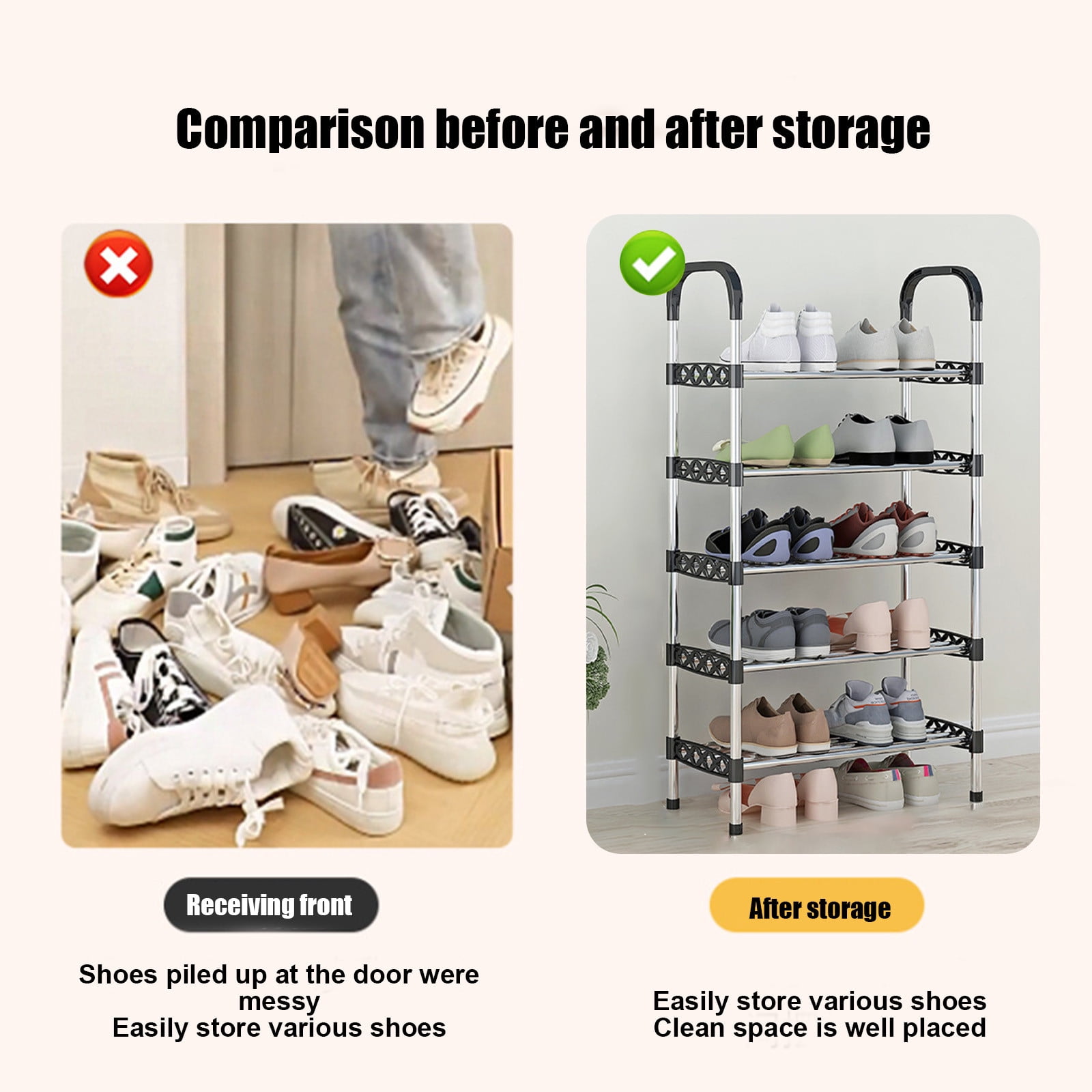 Montage rapide : la boîte à chaussures est pliable et se monte en seulement 3 à 5 minutes, ce qui permet d'économiser du temps et de l'énergie. 1 boîte d'emballage. L'armoire à chaussures à plusieurs étages convient à tous les types de chaussures et offre de la place pour les chaussures pour homme et femme. En outre, elle peut également être utilisée pour ranger et organiser des objets du quotidien tels que des livres, des jouets, des cosmétiques, des collations, des articles de toilette et des objets de collection. Étagère à chaussures haute : la taille extensible de l'étagère à chaussures pliable en plastique est de 45 cm de long x 35 cm de large x 165 cm de haut et se compose de 9 niveaux (8 niveaux + 1 grand niveau de grille). Rangement à chaussures XL avec porte magnétique, boîte à chaussures Les fentes d'aération favorisent la circulation de l'air et empêchent la formation d'odeurs. Rangement multifonctionnel : la boîte de rangement pliable pour chaussures offre non seulement de la place pour différents types de chaussures pour homme et femme, y compris les baskets, les chaussures plates, les talons hauts, etc. Étagère à chaussures empilable - Marque - Modèle - 6 étagères - Blanc - Élégance chic... Boîte à Chaussures Empilable Anti Poussière Boîte À Chaussures Empilable Transparente Boîte À Chaussures - Anti-Poussière - À Rabat Boîte Chaussures Pliable Anti Poussière Design de porte magnétique : cette grande étagère à chaussures dispose de panneaux de porte transparents à double couche et de portes magnétiques solides à fermeture automatique. Qualité supérieure : la boîte à chaussures empilable est fabriquée en polypropylène + PS de qualité supérieure, durable et respectueux de l'environnement. Armoire à chaussures, empilable, à 6 animaux, pliable, avec portes magnétiques transparentes, rangement de chaussures, gain de place, étagère à chaussures pour la maison et la chambre à coucher, 45 x 5599€ (55 990,00€/kg Le cadre pliable renforcé est robuste, sûr et fiable et est idéal pour ranger et organiser les chaussures et autres objets. Boîte à chaussures transparente empilable : la porte magnétique transparente facilite le retrait des chaussures et empêche la poussière. Description: Nom du produit : boîte à chaussures pliable Matériau : PP + PS Spécifications : 6 étages, 9 étages Taille 6., Étage : 116,8 x 45 x 35,1 cm., Taille 9., Étage : 167,6 x 45 x 35,1 cm., Poids: 9 étages:7., 8kg,6 étages:5., 5kg Contenu de l'emballage : 1 boîte à chaussures pliable. Son design polyvalent et sa fonction en font un excellent ajout à n'importe quelle maison.