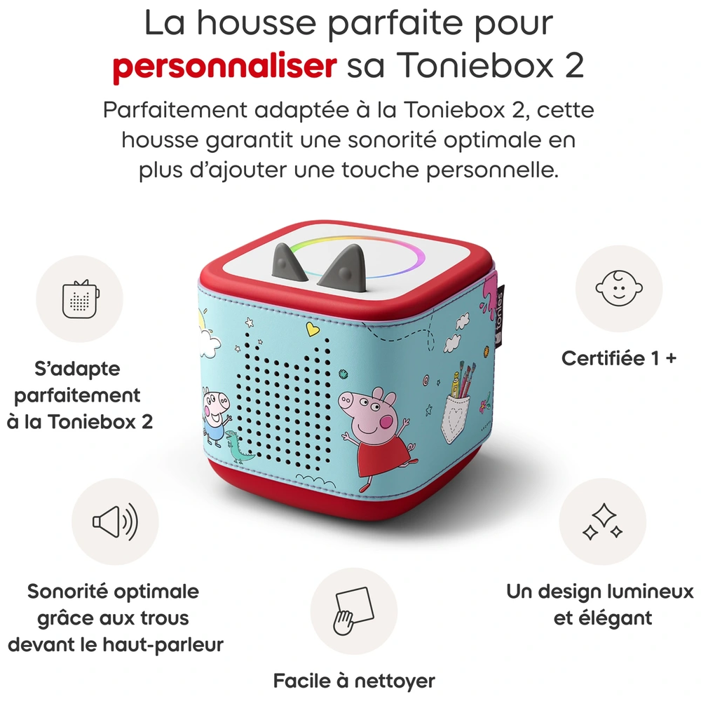 Compatible avec la Toniebox 2 (vendue séparément) La Toniebox 2 est un système audio pensé pour les petites mains et conçu pour les faire grandir en stimulant leur indépendance et leur confiance en eux au fur et à mesure qu'ils apprennent et jouent. Description du produit Parfaitement adaptée à la Toniebox 2, cette housse garantit une sonorité optimale en plus d'ajouter une touche personnelle. La Toniebox 2 est compatible avec toutes les figurines audio tonies(r) et intègre désormais Tonieplay, une nouvelle catégorie de produits proposant des jeux interactifs sans écran, des quiz et des défis pour compléter l'expérience audio réussie. tonies Coffret Mes Premiers, dans La Jungle, Compatible Toniebox 1 Certifiée 1 +, elle dispose d’un simulateur d’aube et d’une lumière d’endormissement avec minuterie, qui en font une compagne du lever au coucher pour aider les familles à créer des rituels doux et rassurants, et devient un vrai repère sonore et lumineux dans leur quotidien Avertissement De Sûreté Aucun avertissement applicable Rendez votre Toniebox 2 unique en la personnalisant avec la Housse Toniebox 2 - Au Coeur De La Jungle ! Comme une seconde peau, elle a été conçue pour s'adapter parfaitement adaptée à la Toniebox 2 Tonies Figurine Disney Housse Toniebox 2 - Au Coeur De La Jungle | Tonies Protection Toniebox Motif Jungle Transformez votre Toniebox 2 en exploratrice tropicale avec cette housse aux motifs de jungle colorés ! Inspirée de la nature sauvage, elle permet de personnaliser et de protéger votre conteuse tout en préservant ses performances sonores