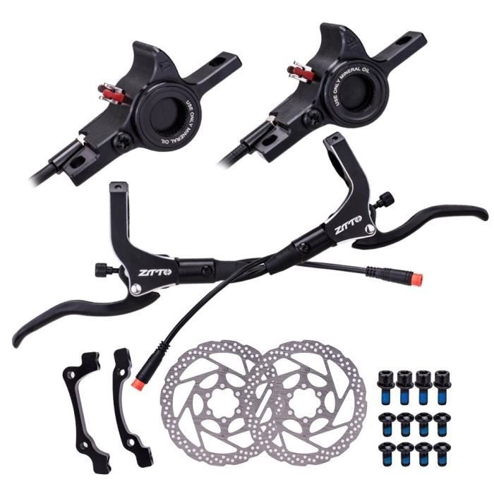 Frein Hydraulique Scooter électrique Kit De Frein à Disque Hydraulique à Double Piston De Haute Qualité DYISLAND LD-200PLUS Pour Vélo Électrique Avec Capteur De Coupure D'Alimentation Système De Freinage E-Bike Freins Hydrauliques Vélo électrique * Le tuyau d'huile en maille d'acier tissé anti-pliage est enveloppé d'une couche de PVC et tissé avec une couche intérieure en maille d'acier pour faire face facilement au pliage répété de la voiture. La main droite correspond au frein avant, la main gauche correspond au frein arrière. Nom du produit : vélo électrique pliable ebike Kick Scooter Power Off Frein Couleur : noir. [Ensemble de freins complet] Ce kit de freins électriques pour vélo comprend une paire de freins hors tension (L ou F sans disque), un frein d'arrêt (avant ou arrière avec disque de 160 mm) et deux disques de frein de 160 mm, vous avez tout ce dont vous avez besoin pour une performance optimale. Système hydraulique fiable : doté d'un design hydraulique à double piston avec un câble étanche à 2 broches, ce système offre un freinage constant et réactif pour votre véhicule électrique pliable ou scooter. Matériaux de qualité supérieure : fabriqué en alliage d'aluminium, le corps de la pompe usiné CNC est conçu pour durer et résister, tandis que les véritables feuilles métalliques frittées offrent une puissance de freinage fiable dans diverses conditions. Liste 3 : 2 freins hors tension, 2 disques de frein de 160 mm. Caractéristiques : * Pour jeu de freins hydrauliques MT600 à double piston, avec câble étanche à 2 broches, convient à la plupart des véhicules électriques pliants électriques. kit connecteur étanche 2 voies * Les freins sont standard pour les vélos électriques avec disques de 3 mm et 160 mm, prennent également en charge les disques de frein de 2,8 mm. Caliper en aluminium à 2 pistons avec un poids de 302 g pour l'avant et 322 g pour l'arrière. Le tuyau de l'étrier arrière et le levier sont séparés pour... Distance entre les trous d'installation de l'étrier : 51 mm., Interface : 2PIM étanche. * Usinage CNC de la pompe entièrement en aluminium, frein à huile à double piston (CNC intégré). Liste 2 : 1 frein d'arrêt (avant ou arrière avec disque de 160 mm). * Étrier pour double cylindre gauche et droit, pour une force uniforme, rebond rapide. * Le processus de la poignée de frein est également très bon, ce que vous voyez est ce que vous obtenez, et il y a un design antidérapant au-dessus de la tige. Taille : 2 broches - Longueur du câble : 25 cm. Les meilleures offres pour Jeu de freins hydrauliques MT600 pour vélos électriques véhicules pliants dou sont sur Comparez les prix et les spécificités des produits neufs et d 'occasion Pleins d 'articles en livraison gratuite * L'installation de la poignée de frein est divisée, ce qui est très pratique pour réparer ou installer une nouvelle voiture, sans démonter d'autres accessoires. Matériau : alliage d'aluminium.