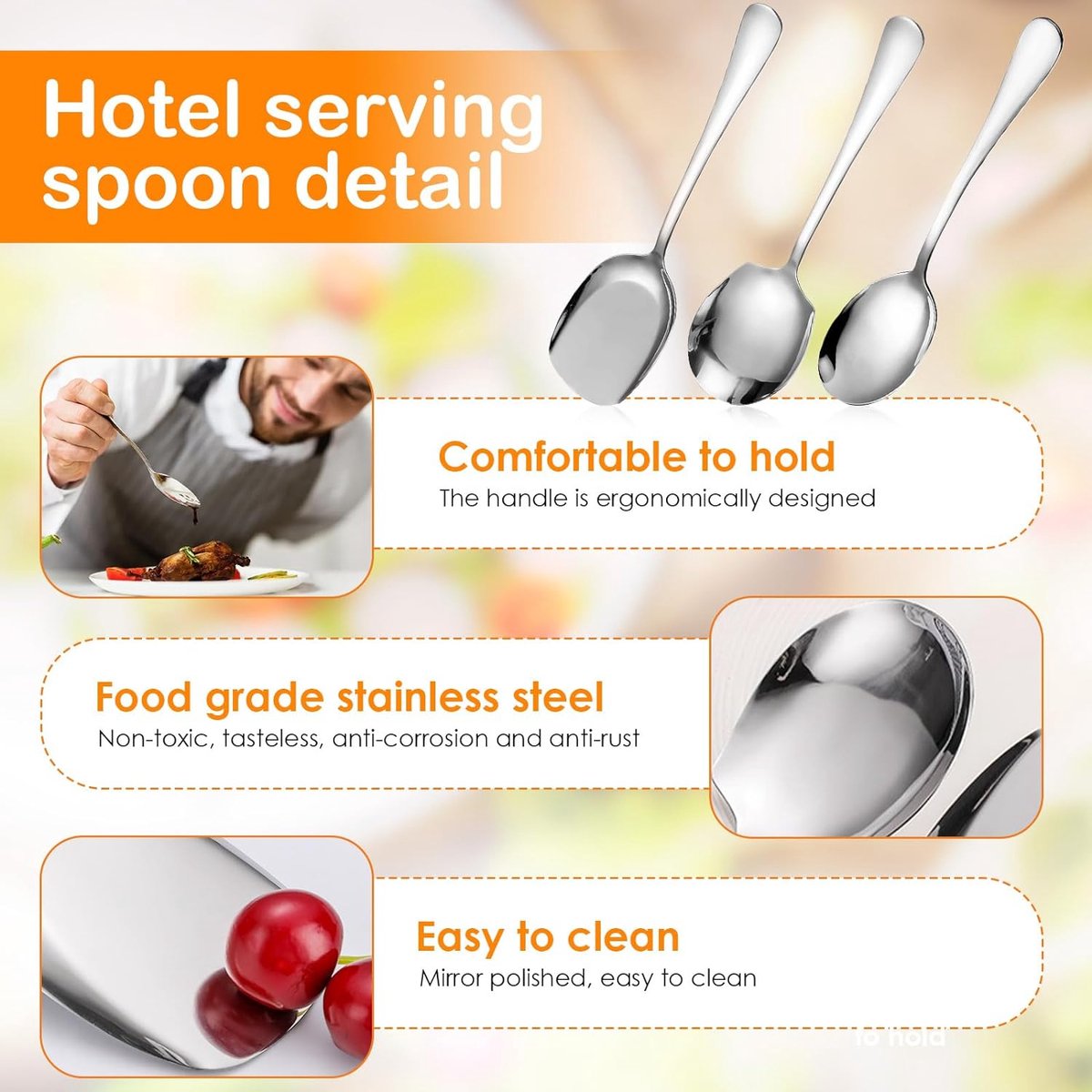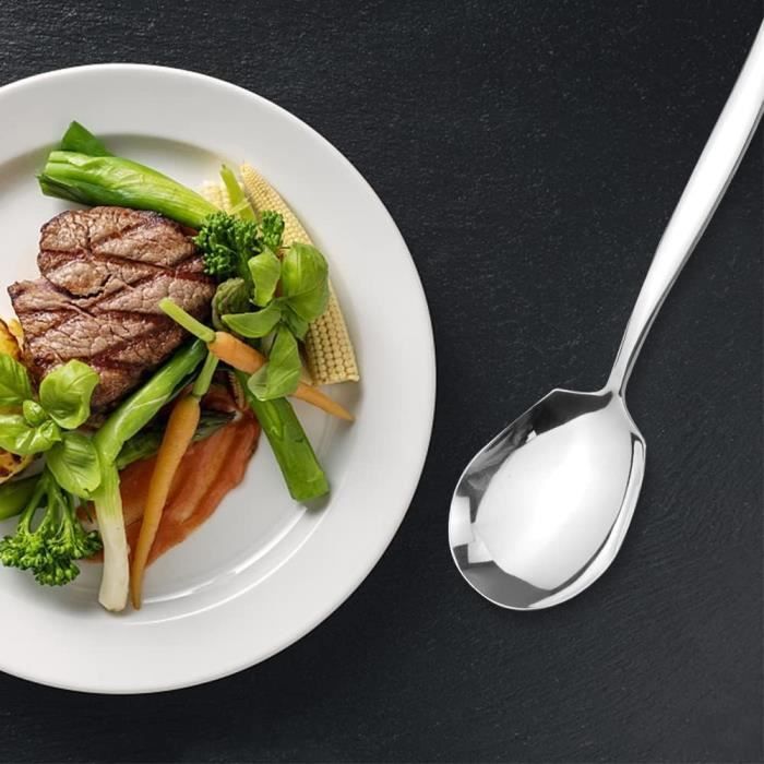 Cuillère de Service en Acier Inoxydable]L'ensemble Cuillères de Service en Acier Inoxydable comprend une cuillère de service et une cuillère de service à fentes,idéales pour servir et distribuer des aliments,tels que des buffets,des hôtels ou des dîners de famille Conception ergonomique : La cuillères à soupe de service est conçue de manière ergonomique avec un long manche ergonomique. Grandes Cuillères à Soupe Acier Inoxydable Couvert Grunwerg Windsor Cuillère à Soupe Acier Inoxydable Couverts Set X 2-Free Grande Cuillère Buffet Inoxydable Partager la nourriture : Cette cuillere de service a une surface plus large et incurvée, les ingrédients sélectionnés et les soupes peuvent être servis facilement et rapidement, et les aliments ne se renversent pas facilement. Elle peut être lavée directement ou au lave-vaisselle. Conseil : Pour garder la surface de la cuillères de buffet brillante, veuillez éviter d'utiliser des billes de fil d'acier, des outils durs ou tranchants pour nettoyer, afin de ne pas rayer la surface de la grandes cuillères de service. Cette cuillères à salade grandes peut être utilisée comme cuillère à salade, cuillère à soupe, cuillère de service, cuillère de service, etc., convenant à l'usage quotidien, aux événements formels, aux mariages, aux fêtes, aux dîners familiaux, aux buffets et à d'autres occasions Grande Cuillère De Service Cuisine Set 3 Inox - Cuillères Buffet Matériau en acier inoxydable : Cette cuillères de service en acier inoxydable est fabriquée en acier inoxydable de bonne qualité avec une technologie de polissage multicouche, ce qui rend la surface brillante, résistante à la chaleur et à la rouille. Cette buffet cuillère de service est confortable à tenir et ne se fatiguera pas après une longue période d'utilisation. Vous pouvez utiliser cette cuillere service pour partager la nourriture et passer de bons moments avec votre famille et vos amis.