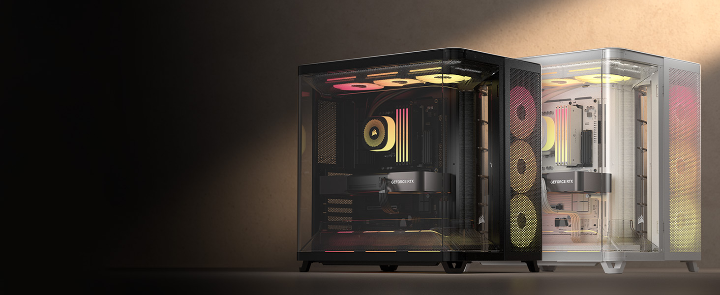 Il dispose d'une chambre de radiateur dédiée de 360 mm, gardant la chaleur associée au refroidissement du processeur hors de la chambre principale pour des capacités thermiques améliorées. Corsair AIR 5400 LX-R RGB iCUE LINK White au meilleur prix sur La chambre principale reste également fraîche grâce aux conduits d’air sur les rangées de ventilateurs supérieures et inférieures, qui augmentent la vitesse du flux d’air pour des températures basses avec un très faible bruit. Les ventilateurs RGB à rotor inversé RS-R groupés permettent un flux d'air d'admission puissant mais silencieux avec un éclairage dégagé pour un refroidissement puissant et des visuels éblouissants Des constructions plus propres sont possibles avec la prise en charge d'ASUS BTF, MSI Project Zero et Gigabyte Project Stealth avec de nombreuses découpes pour connecteurs et câbles et des attaches-câbles pour garder les choses en ordre même là où vous ne pouvez pas les voir Boîtier Compatible AIO 360mm Corsair AIR 5400 LX-R RGB Blanc – Boîtier PC Triple Chambre Compatible Cartes Mères Connexion Inversée Un extérieur en verre enveloppant offre une vue imprenable et les ventilateurs RGB à rotor inversé inclus offrent un refroidissement puissant avec un éclairage RGB dégagé pour un PC aussi beau que performant. Gestion des câbles plus facile grâce à un nouveau plateau de carte mère à chevilles avec supports de colliers de serrage qui peuvent être positionnés n'importe où et tournés pour un placement de câbles entièrement personnalisable Deux panneaux de verre incurvés se rencontrent au coin du boîtier et s'ouvrent vers l'extérieur, la charnière du panneau avant disparaissant dans la chambre du radiateur pour une méthode visuellement attrayante d'accès à l'intérieur pour les mises à niveau Une chambre séparée à l'avant du châssis contient un radiateur de 360 mm pour le refroidissement du processeur, garantissant qu'aucune chaleur générée dans la chambre n'affecte les autres composants Boîtiers PC Boîtier Corsair AIR 5400 LX-R LINK Blanc Verre Trempé Une troisième chambre abrite l'alimentation, le stockage et les câbles, et elle possède également ses propres emplacements d'admission et d'échappement dédiés Sa triple chambre et la prise en charge de radiateurs de 360 mm répartis en trois emplacements (avant, haut, bas) en font l'une des meilleures options pour les configurations de refroidissement liquide avancées et les configurations personnalisées