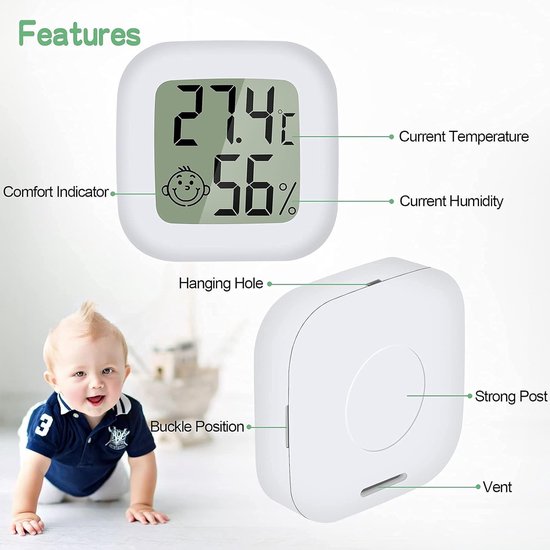🔄 Utilisation universelle Avec seulement 4,3×4,3×1,3 cm et 23 grammes, l'hygromètre est ultra-compact et facilement transportable. 5 Pièces Kit Hygromètre Druuzyl Petit Thermomètre Hygromètre Intérieur Digital à Capteur Humidité De plus, les symboles faciaux (souriant/mécontent) aident à une évaluation rapide et offrent une utilisation relaxante, sans avoir à interpréter des chiffres complexes. 🧠 Thermomètre-hygromètre numérique intelligent Ce mini-hygromètre numérique utilise 2 symboles faciaux distincts pour indiquer l'humidité, un visage souriant signale une humidité idéale de 40–70%, tandis qu'un visage mécontent apparaît pour des valeurs inférieures à 40% ou supérieures à 70%. 🌡️ Plage de mesure précise Doté d'une large plage de mesure de température de -20~60℃ (-4~140℉) et d'une précision de ±1℃ (±1., 8℉), l'appareil fournit des valeurs fiables. Le mini thermo-hygromètre avec capteur intelligent et précis pour vous tenir au courant de la température et de l'humidité ambiantes. Réponse rapide et haute précision De petites écarts de jusqu'à 1℃/% entre différents appareils sont normaux et tombent dans la tolérance. Jissta 5 Pièces Thermomètre Hygromètre Interieur Numérique 👀 Facile à lire De grandes chiffres contrastées affichent clairement la température et l'humidité actuelles – lisibles même de loin, par exemple depuis le canapé ou le lit. Ainsi, vous maintenez votre maison intuitivement saine et confortable.