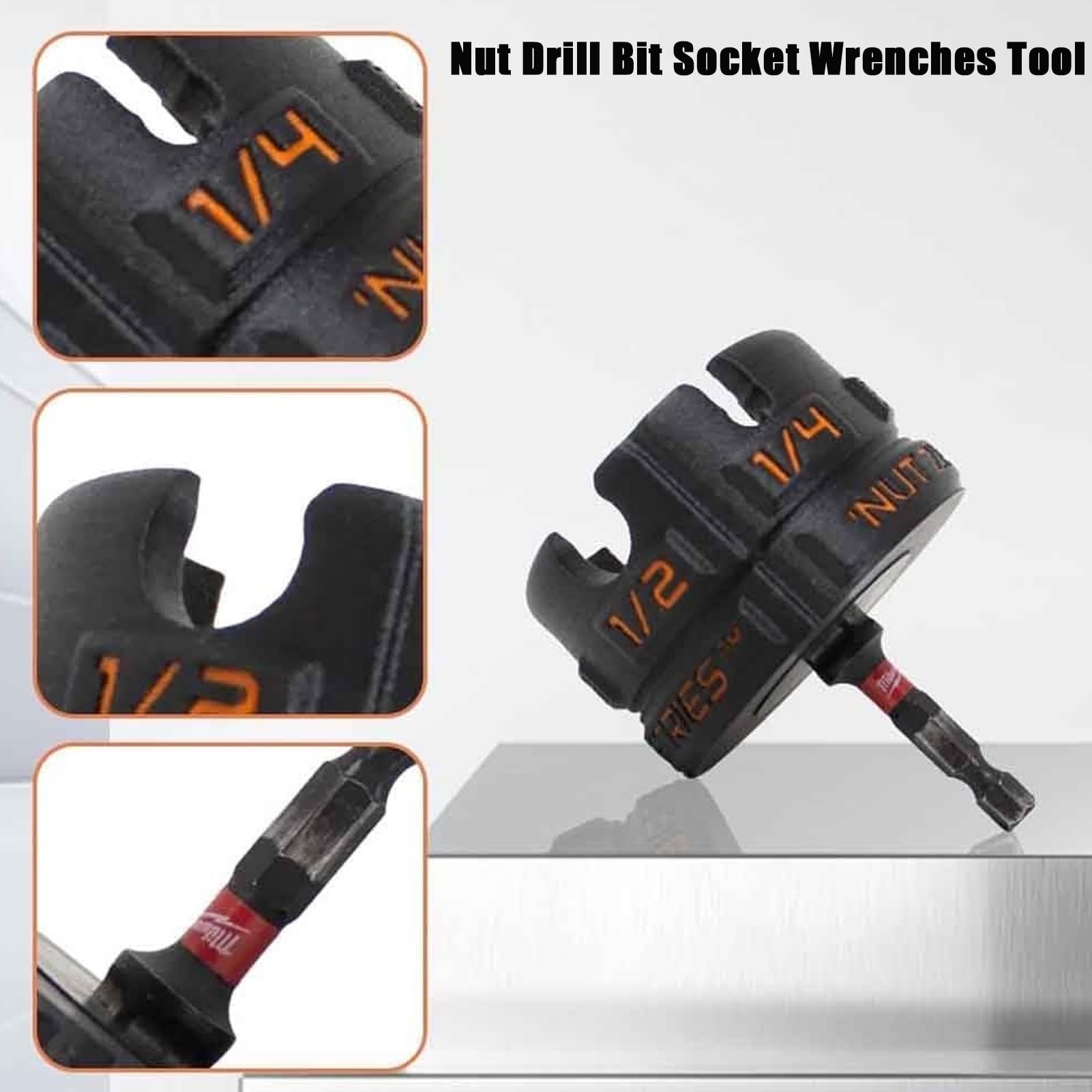 【Effortless Operation Along Threaded Rods】Glides smoothly along any point of the threaded rod, making it ideal for overhead or multi-tiered installations that require precision and speed. Nut Zipper Drill Attachment for Fast Nut and Bolt Removal, Durable High-Speed Power Drill Adapter for 1/4, 3/8, 1/2 Threaded Rods, for Conduit Racks, Strut Systems, and Overhead Fixtures Specifications Name: Nut Zipper Drill Attachment for Fast Nut and Bolt Removal Compatibility: 1/4, 3/8, and 1/2 threaded rods Shank Type: 1/4 hex shank Material: Thermoplastic body with steel bearing Package Includes 1 * Nut Zipper Drill Attachment Notes 1., For use with standard power drills—avoid using with impact drivers., 2., Always wear gloves and eye protection during operation., 3., Ensure proper alignment on threaded rods to avoid cross-threading. 【Nut Zipper Drill Attachment for Fast Installation】Specifically engineered for 1/4, 3/8, and 1/2 threaded rods, this Nut Zipper Drill Attachment significantly speeds up nut installation for conduit racks, strut systems, and heavy-duty fixtures. Gain De Temps Installation Nut Zipper Drill Attachment For Fast Nut And Bolt Removal, 1 Adaptateur Perçeuse Standard Speed up the installation of nuts on threaded rod: Designed for fast tightening of 1/4", 3/8" and 1/2" threaded rod, this nut puller drill bit attachment is ideal for pipe racks, support systems and heavy-duty fixtures Set Harbor Freight Nut Zipper Drill Attachment - Quick Nut & Bolt 【Transforms Drill into High-Speed Nut Driver】Converts your standard power drill into a rapid nut-fastening tool, drastically reducing manual labor and increasing productivity on job sites.