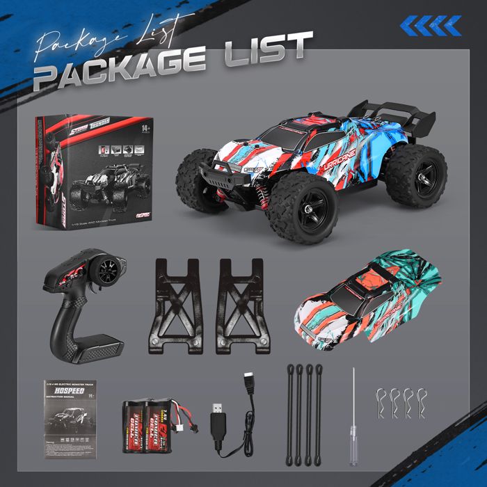 Jeux - Jouets - Découvrez notre offre Voiture télécommandée tout-terrain - SWROSE -RC 1:18 Étanche ESC 4x4, 40 km/h, 2 Batteries et 2 Coques, Véhicule Tout Terrain Le câble de charge USB inclus facilite la recharge. Acheter Nouvelle voiture télécommandée à grande échelle SG116MAX/PRO Voiture télécommandée sans balais à grande vitesse Voiture de course professionnelle 4WD 2.4G Voiture de dérive tout-terrain Jouets pour garçons Deux moteurs, vitesse de pointe supérieure à 60 km/h : Cette voiture télécommandée est équipée de deux moteurs, lui permettant d'atteindre des vitesses supérieures à 60 km/h tout en conservant un contrôle irréprochable. Un cadeau idéal pour les amis et la famille : Adapté aux enfants de 8 ans et plus, ce monster truck permet à tous de profiter des sensations fortes de la course tout-terrain. La carrosserie double couche incluse permet d'améliorer facilement l'apparence du véhicule. Deux moteurs, vitesse de pointe supérieure à 60 km/h : Cette voiture télécommandée est équipée de deux moteurs, lui permettant d'atteindre des vitesses supérieures à 60 km/h tout en conservant un contrôle irréprochable Voiture télécommandée tout-terrain - SWROSE -RC 1:18 Étanche Autonomie de 40 minutes : Deux batteries lithium-ion de 7,4 V/1 500 mAh offrent jusqu'à 40 minutes d'autonomie ininterrompue, vous permettant de contrôler votre voiture télécommandée pendant de longues périodes de jeu sans interruption. Télécommande précise 2,4 GHz : Grâce à un système sans fil 2,4 GHz précis, la télécommande de votre camion télécommandé atteint plus de 100 mètres et est insensible aux interférences des autres émetteurs. Le groupe motopropulseur optimisé offre des accélérations palpitantes, que ce soit pour la course, les cascades ou les explorations en plein air.