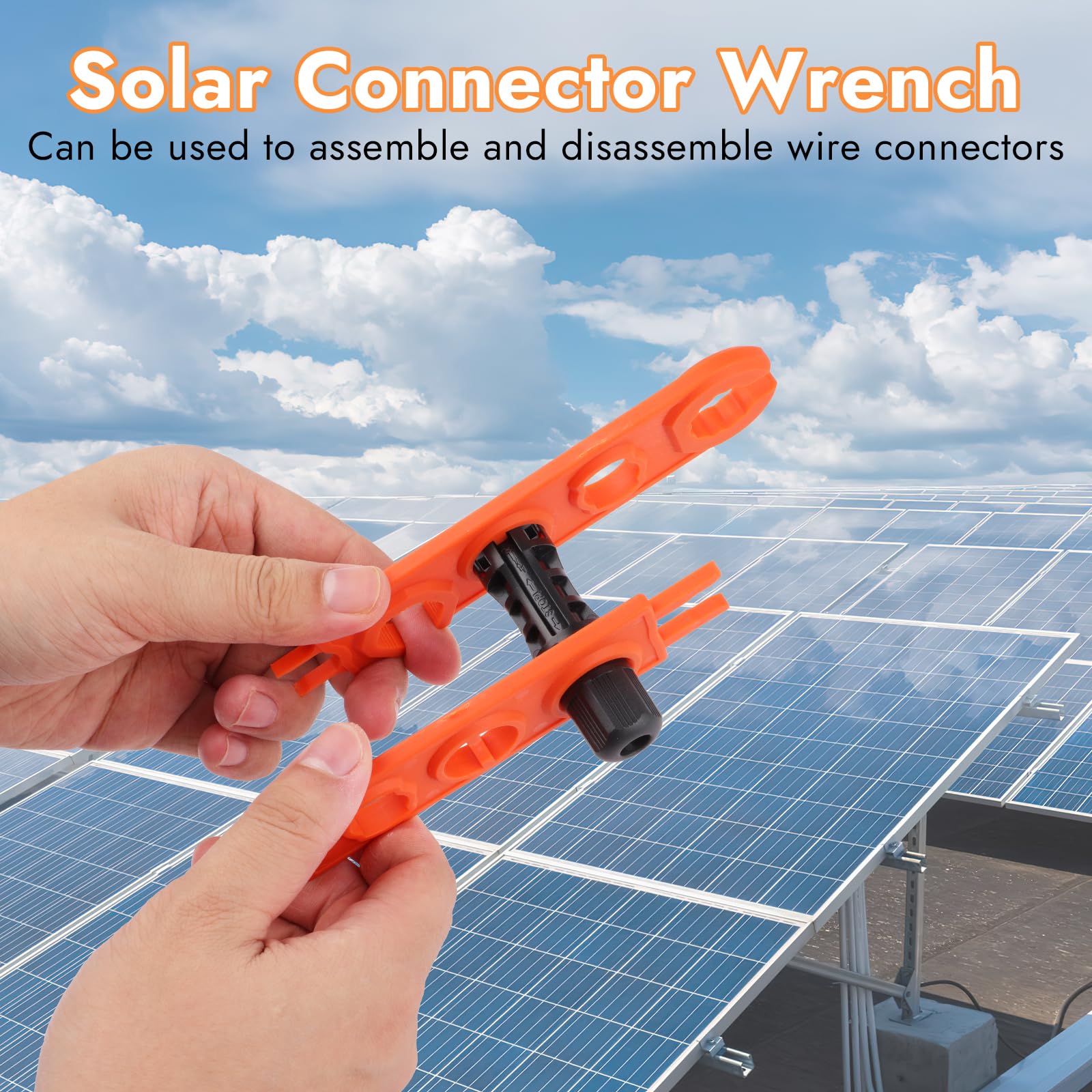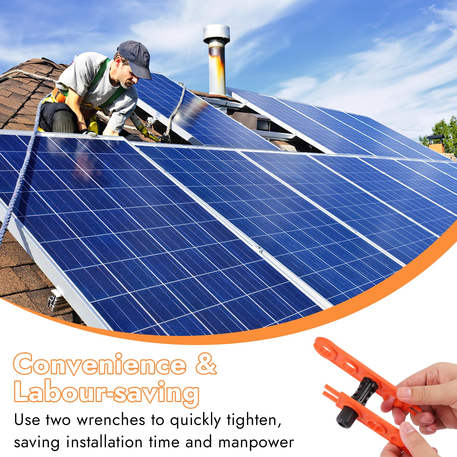 Pack de 2 clés de connecteur]ensemble pour un serrage rapide, économisant du temps d'installation et de la main d'œuvre. [Convient à la plupart des connecteurs solaires]. Conçu pour le montage et le démontage des connecteurs et des prises Les lignes sont lisses et la surface est lisse, et il n'est pas facile de la rayer en tournant la clé, vous pouvez donc l'utiliser en toute confiance. Outil Installation Panneau Solaire DOYUKY 2 Pièces Outil De Connecteur De Panneau Solaire Fonctionne MC4 Connecteur Panneau Solaire Spécifications : b Nom du produit : Clé de Connecteur de Panneau Solaire Matériau : PPO Taille : Comme indiqué Couleur : Orange Quantité : 2 Pièces Fonctionnalités : b Conçu de manière ergonomique pour un fonctionnement naturel et confortable du jeu de clés solaires PV. Facile à connecter:Utilisez la clé pour fixer la base et le corps du connecteur du panneau solaire séparément, puis tournez la clé pour serrer le connecteur solaire au câble solaire. Trois tailles (1500V/1000V) de trous de base et deux tailles de trous de fixation ont été conçues pour s'adapter à différents connecteurs. Ce kit de 2 clés universelles permet de monter et démonter facilement les connecteurs MC4 et autres raccords PV sans abîmer les câbles. Fabriquées en plastique... Haut du connecteur du câble solaire pour Panneau Solaire système PV - Chine Mc4 Matériau:Nouveau design, les connecteurs PV sont fabriqués en plastique renforcé PPO/PSA, qui est plus antidérapant et durable. Universelle et polyvalente : la clé d'assemblage est dotée d'une variété de trous universels, utilisés pour l'assemblage et le désassemblage des connecteurs, et peut également être utilisée pour le désassemblage et l'assemblage des fusibles photovoltaïques. Équipé d'une variété de conceptions de trous universels pour assurer un serrage rapide et facile, simplifiant le processus d'installation, économisant du temps et du travail avec cet outil efficace.