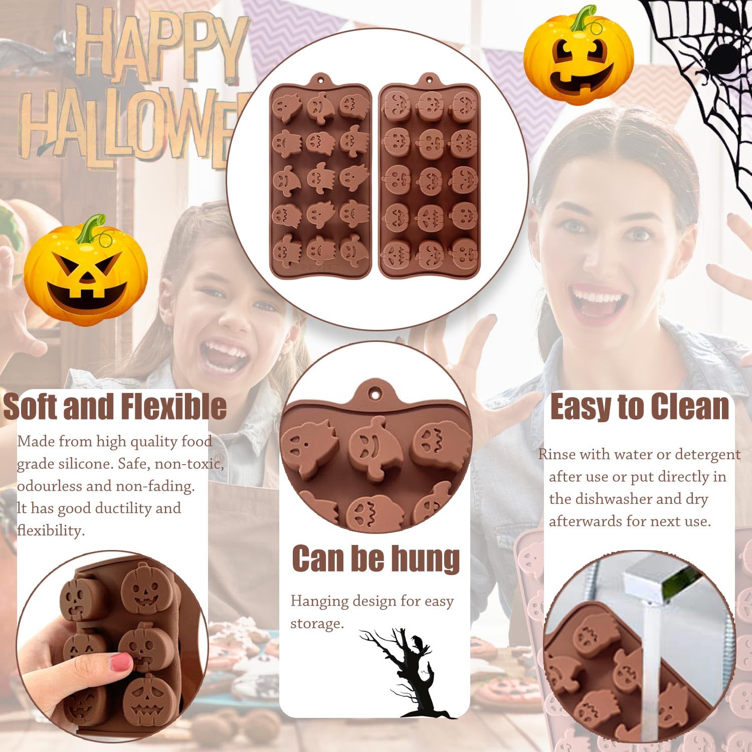 Vous pouvez réaliser 16 bonbons fantômes d'Halloween ! Créez facilement de délicats desserts en forme de fantôme à mettre sur votre gâteau, efficace et pratique Vous pouvez démouler le gâteau ou le chocolat facilement., Lavable au lave-vaisselle. Moule Silicone Pour Bonbon Ecerangus Lot De 2 Moules En Silicone Pour Halloween, 58 Cavités En Forme De Mini Citrouille Et 69 Mini Fantômes Pour Halloween, Bonbons, Chocolat, Biscuits, Gelée, Friandises Pour Motif du thème d'Halloween : ensemble de deux pièces, citrouille et effrayant, deux styles différents d'apparence, peut bien faire écho à la fête d'Halloween, apporter plus de plaisir à la cuisson pour vous et votre famille. Texture douce, facile à plier pour le stockage et peut être suspendu pour économiser de l'espace de stockage. UTILISATIONS MULTIPLES : Ces moule silicone ne conviennent pas seulement à la fabrication de chocolats, mais aussi à celle de bonbons durs, de bonbons mous, de gelées, de yaourts glacés, de glaçons au jus de fruit, de puddings, de garnitures de gâteaux et de faveurs pour les fêtes d'anniversaire d'Halloween. Kalanka-Lot De 2 Moules En Silicone Pour Halloween, 12 Cavités, Moule À Chocolat, Bonbons, Fantôme, Citrouille, Crâne Pour Chocolat, Bonbons, Gelée-Kalanka Kamehame Lot De 2 Moules En Silicone Pour Sucettes Au Chocolat D'Halloween En Forme De NON-ADHÉSIF ET RÉUTILISABLE : Le matériau en silicone a d'excellentes propriétés anti-adhérentes et ne se fissurera pas comme les autres moules en plastique. Ces moule halloween sont réutilisables. Silicone de qualité alimentaire : moule silicone est fabriqué en silicone de qualité alimentaire, non toxique et inodore, les aliments peuvent être facilement démoulés en les tournant et en les poussant, ils sont durables et peuvent être utilisés en toute confiance.