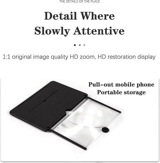 Les mesures étant prises à la main, les tailles indiquées peuvent varier de 1 à 3 cm. Caractéristiques: 1 , Écran HD: Nouvel amplificateur d'écran incurvé pour téléphone HD, grand champ de vision L'écran de zoom HD réduit le rayonnement Il est solide et robuste et peut être facilement rangé dans votre sac ou emporté avec vous. Excellentes images : offrant un écran plus net et plus net, notre grossissement d'écran agrandit l'écran de votre smartphone 2 à 3 fois pour améliorer votre plaisir de vision. Profitez d'un écran plus grand et lumineux où que vous soyez, car cet accessoire est spécialement conçu pour la commodité des voyages. Design protecteur pour les yeux : en utilisant cette loupe d'écran, vous ne protégez pas vos yeux contre les rayonnements nocifs, mais réduisez également la fatigue visuelle due à la prolongation de l'écran. Caractéristiques : Nom du produit: loupe pour téléphone portable Poids du produit : 53 g Dimensions de l'écran : environ 18,5 x 15,8 cm. Amplificateur d'écran de téléphone Portable, 2... – Grandado Remarques : En raison des différents réglages d'éclairage et d'écran, la couleur du produit peut être légèrement différente de l'image. Le cadeau parfait pour ceux qui aiment leur téléphone. Produits : 1 loupe d'écran pour téléphone portable. Optez pour une loupe pour smartphone et profitez d'un agrandissement optimal de l'écran. Fini les yeux fatigués et les efforts pour déchiffrer les textes ! Les loupes pour smartphone sont pratiques, légères et faciles à transporter. Elles se fixent simplement sur votre téléphone et vous offrent un confort de lecture optimal Loupe Telephone Portable Loupe D'écran Loupe D'écran De Téléphone Intelligent Loupe De Smartphone Loupe D Ecran De 8 Pouces Loupe D Ecran Gsm Ecran 3d Telephone Portable Telephone Portable Loupe D Ecran Zwart Loupe Portable Anti-fatigue Oculaire Matériau du produit : PVC, ABS.