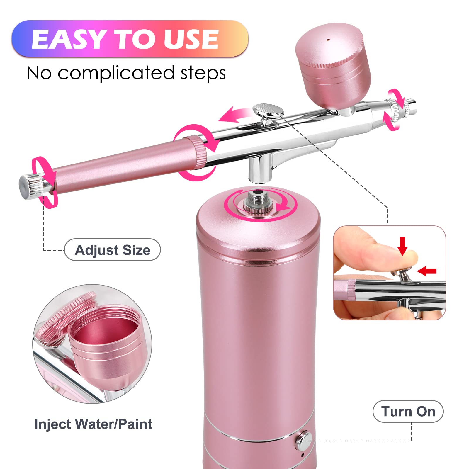 La batterie dure plus de 60 minutes en fonctionnement continu et prend en charge les fonctions de charge USB et de téléphone portable. Kit Aérographe Sans Fil, Pistolet Aérographe Portable, Kit Aérographe Rechargeable, Aérographe Sans Fil Avec Compresseur, Pour Décoration D'ongles, Décoration De Gâteau, Maquillage Kit aérographe avec compresseur, pistolet aérographe portable, kit aérographe rechargeable, aérographe sans fil avec compresseur, pour décoration d'ongles, décoration de gâteau, maquillage, modélisation de tatouage (rose) Description du produit: 1., Il suffit d'appuyer sur l'interrupteur et le déclencheur démarre. Buse de 0,3 mm : le kit de pistolet de pulvérisation par gravité utilise une combinaison d'aiguille de 0,3 mm qui peut réguler le flux de peinture plus finement et réduire les surpulvérisations. Système d'aérographe polyvalent : le kit d'aérographe avec compresseur est un outil de peinture qui convient à différentes fins, par exemple exemple pour la peinture, le maquillage, le spa, la peinture corporelle, le modélisme, etc. Il est idéal pour un usage personnel ou dans un salon de beauté. Spécification: Matériau : métal + plastique. Kit d'aérographe avec compresseur d'air, pistolet aérographe Accessoires complets : kit aérographe avec compresseur inclus de nombreux accessoires pour répondre à vos besoins : 1 pistolet pulvérisateur, 1 compte-gouttes, 1 buse de rechange de 0,3 mm, 5 brosses de nettoyage, 5 aiguilles de nettoyage, 2 gobelets en plastique (20 cc et 40 c), 1 câble de charge de type C. Vous pouvez régler librement la quantité de pulvérisation. Contenance : 1 pistolet pulvérisateur, 1 compte-gouttes, 1 buse de rechange de 0,3 mm, 5 brosses de nettoyage, 5 aiguilles de nettoyage, 2 gobelets en plastique (20 ml et 40 ml), 1 câble de charge de type C. Marque. Daakro ; Voltage. 220 Volts ; Usages recommandés pour le produit. Système d'arrosage ; Source d'alimentation. Alimenté par pile ; Niveau sonore. 30 Décibels Pistolet Aérographe Rechargeable VBESTLIFE Ensemble Aérographe Kit Aérographe Pistolet Aérographe Portable Rechargeable Sans Fil Stylo Aérographe Enfant Temps de fonctionnement : environ 1 à 2 heures., Couleur : rose.