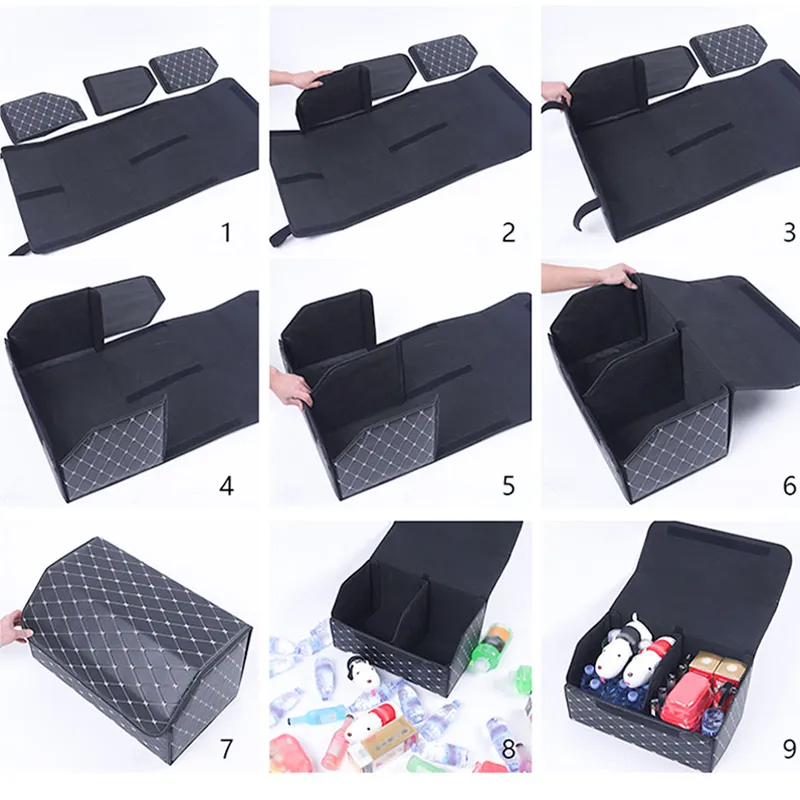 Matériau : cuir synthétique. Cet organisateur de coffre de voiture pliable dispose d'un cuir imperméable, d'un couvercle sécurisé et de plusieurs compartiments pour ranger du matériel de voyage, des courses et des outils Dimensions : 32,5 x 27,5 x 24 cm. La texture est haut de gamme, le matériau est résistant à l'usure et durable. Pratique à portée de main : équipé de poignées métalliques sur les deux côtés, il est robuste et facile à transporter. Rangement Voiture Avec Séparateur Amovible Ergocar Boîte De Rangement En Cuir Pour Coffre De Voiture - Boîte De Rangement Pour Accessoires - Pliable - Fermeture Magnétique étanche - Convient Pour Voiture/SUV/camion/automobile Rangement Voiture Pratique Contenu de l'emballage : 1 pièce., Caractéristiques : 1., Organiseur de coffre de véhicule : livré avec un organisateur amovible pour les voitures, le shopping, le camping, les voyages, les pique-niques, etc., 2., Utilisation conviviale amovible : notre organisateur de coffre est amovible pour les voyages. Idéal pour ranger les essentiels quotidiens, les outils, les sacs d'épicerie, les collations, les jouets ou les documents. Compartiments personnalisables : doté d'un séparateur amovible, cet organisateur vous permet d'adapter l'espace de rangement pour répondre à vos besoins spécifiques, que ce soit pour les courses d'épicerie, le matériel d'urgence ou les outils. Confortable et tendance pour un toucher confortable tout en soulevant. Rangement De Coffre De Voiture YEBDD Chaise Longue Inclinable En Dai Souple Pliable Et Réglable Pour Canapés Et Fauteuils De Sac De Coffre Voiture Pliable pour économiser de l'espace : le design amovible de ce coffre de SUV signifie qu'il est facile à assembler et entièrement pliable au hasard pour une taille compacte lorsqu'il n'est pas utilisé. La boîte de rangement pour coffre de voiture est un article essentiel pour un voyage bien rangé. Compartiments personnalisables : doté d'un séparateur amovible, cet organisateur vous permet d'adapter l'espace de rangement pour répondre à vos besoins spécifiques, que ce soit pour les courses d'épicerie, le matériel d'urgence ou les outils. Matériaux de haute qualité