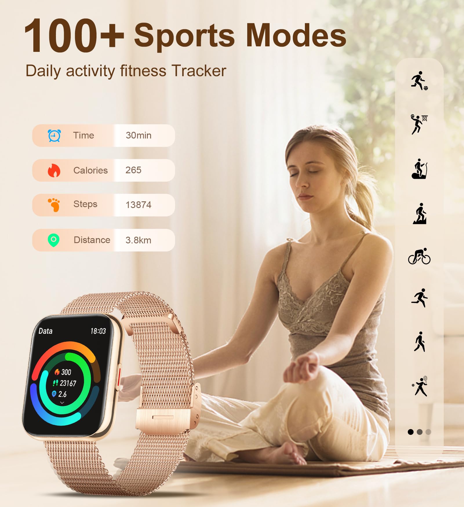 Ajoutez jusqu'à 10 contacts pour un accès rapide., Le Bluetooth 5., 3 garantit une connexion stable et reçoit des notifications de messages des applications comme Facebook et Instagram. En plus du suivi de votre santé intime ou de votre rythme de sommeil, ces montres connectées disposent de capteurs de mouvement, d'un cardiofréquencemètre et d'un GPS pour analyser vos performances sportives 200 Cadrans et 3 Bracelets : La montre connectée IARET pour femme dispose d'un écran HD de 1,85 pour une expérience visuelle et interactive unique. De plus, vous pouvez contrôler l'assistant vocal pour une gestion sans les mains Avec une autonomie de plus de 24 heures, elle est idéale pour une utilisation quotidienne. Longue Durée de Batterie et Fonctions Multiples : Cette smartwatch garantit une vie connectée continue grâce à une batterie de 270 mAh qui se recharge complètement en seulement 2 heures. Smartwatch Femme pour le Suivi de la Santé : Cette smartwatch pour femme surveille avec précision la santé féminine, en suivant le rythme cardiaque et les phases du sommeil (profond, léger, éveillé) 24 heures sur 24., Elle inclut également des rappels pour l'hydratation, des alertes de sédentarité et des exercices de respiration guidée pour un bien-être complet SWGOTA Montre Connectée Femme avec Appels Numérotation Grâce à l'enceinte HD, vous ne manquerez jamais un appel. Changez facilement de bracelet pour l'adapter à vos tenues et occasions Vous pouvez définir des objectifs sportifs personnalisés pour une motivation accrue. ontre Connectée Fee Fitness Sartwatch Montre Connectée Aycy Homme Femme Avec Appel Bluetooth, 1.85" HD Smartwatch, 100+ Modes Sportifs, Montre Intelligente Etanche IP68 Avec Podometre/Sommeil /Cardiofrequencemetre Pour Android IOS, Bleu Montre Connectée Femme Ice Watch 100+ Modes Sportifs : Cette montre sport pour femme offre plus de 100 modes sportifs, y compris la course, le vélo et le yoga, enregistrant des données en temps réel telles que le rythme cardiaque, les pas, les calories et la distance.