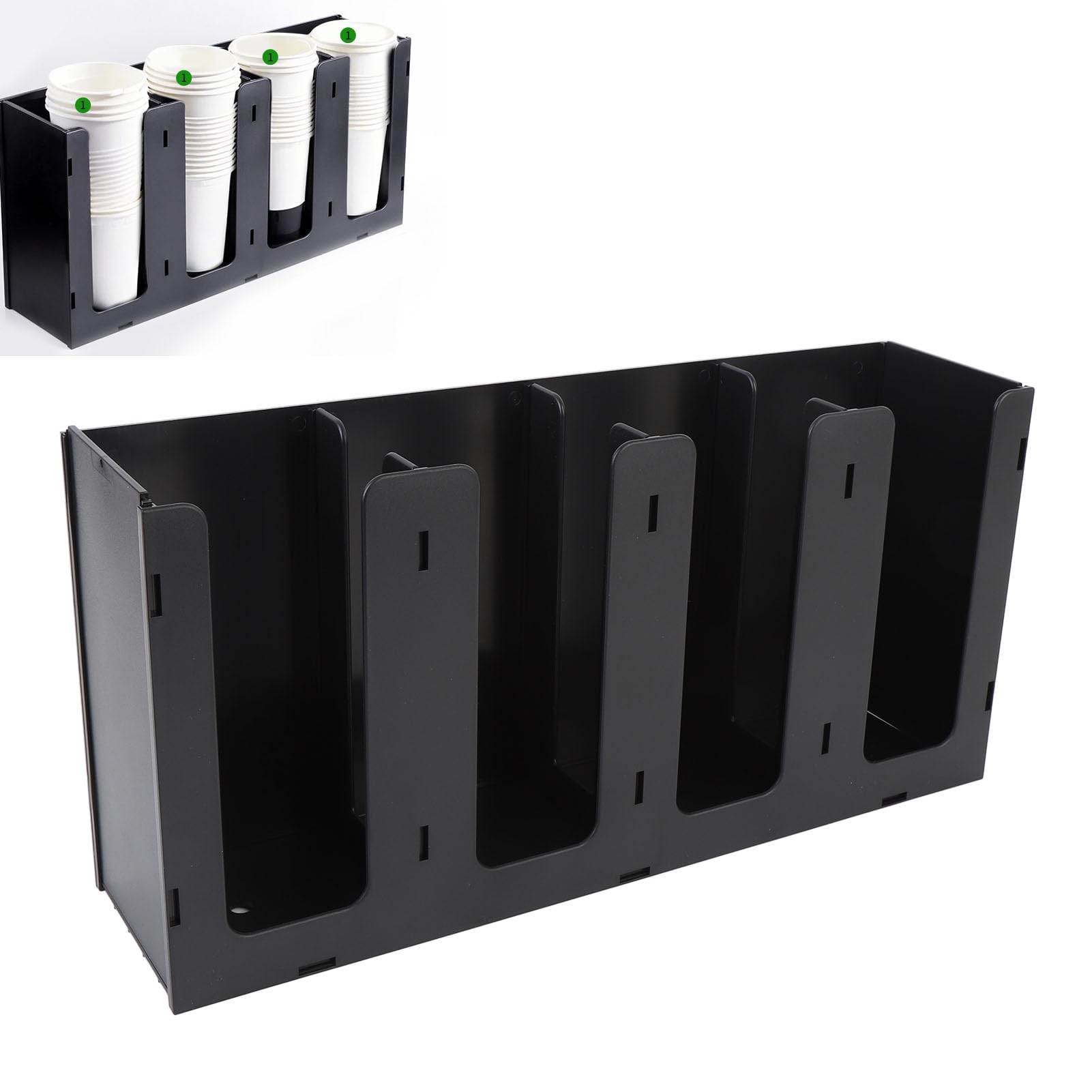 [Matériau acrylique] Fabriqué à partir de l'acrylique, ce distributeur en papier est construit pour durer. Le rack d'affichage en papier est facile à installer et à utiliser. [Matériau]: Ce support de capsule de café est en acrylique. Il peut vous aider à organiser et à stocker des tasses, ce qui est plus pratique Sa conception robuste et résistante aux rayures garantit qu'elle ne se décolore pas ou ne se déformera pas avec le temps, en gardant votre organisateur de stockage de tasses à café même avec une utilisation quotidienne. Facile à assembler et léger, c'est le bon ajout aux cuisines, aux cafés ou aux bureaux où le style et la fonctionnalité vont de pair. Il est idéal pour les restaurants, les bar, les espaces d'étude, etc. Accessoire Rangement Comptoir Transparent Distributeur De Tasses à Café Jetables En Acrylique à 4 Compartiments Et Couvercle Pour Cuisine, Café, Bar, Magasin, Fête (noir Distributeur Gobelets Papier Rangement L'acrylique transparent ajoute également une touche élégante et moderne à n'importe quel cadre. [Résistant aux taches] Conçu pour aucun entretien avec les tracas, cet organisateur de tasse de café et de couvercle est incroyablement facile à nettoyer. [Polyvalent] Que vous ayez besoin d'une solution bien rangée pour votre cuisine à domicile, votre caserne de bureau ou votre café, ce distributeur en papier est à la hauteur de la tâche. [4 compartiments] Cet organisateur de tasse de café et de couvercle dispose de quatre compartiments spacieux pour maintenir en sécurité des gobelets en papier, empêchant les glissements et les déversements. Hapivida Dispensateur en tasse en papier en acrylique, tasse [Économie d'espace] Avec son design élégant et compact, ce distributeur de tasse en papier se fond parfaitement dans n'importe quel décor tout en maximisant votre espace disponible. Comprend quatre compartiments pour un stockage organisé. · Matériau acrylique durable avec bords lisses pour plus de sécurité. · Equipé de coussinets...