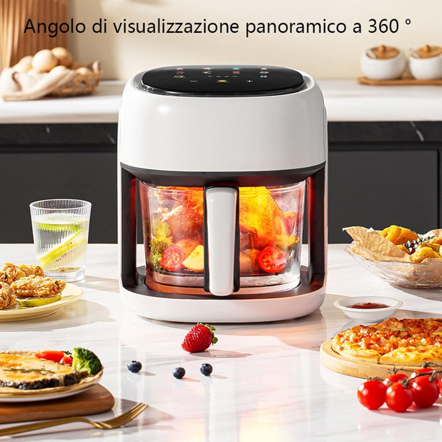 RÉSULTATS DE CUISSON PRÉCIS : Cuisinez des crevettes, steaks, frites, ailes, poisson, poulet et plus avec les programmes préétablis. Avec son design antiadhésif et facile à nettoyer, vous passerez moins de temps à nettoyer et plus à savourer vos repas. Le câble d'alimentation de 85 cm offre de la flexibilité, et les matériaux de construction en acier inoxydable, ABS et PP assurent la durabilité. Suivez le processus de cuisson grâce à l'écran tactile LED et à la fenêtre transparente, ajout parfait à vos appareils de cuisine. Équipée d'un écran tactile LED haute définition, cette friteuse à air offre un affichage de cuisine personnalisé et inclut une fenêtre transparente pour surveiller la cuisson. CREATE/AIR FRYER STUDIO CRYSTAL/Friteuse sans huile 4,2 L sans vaporisateur d'eau blanc cassé/Capacité 5-6 portions, 6 programmes, plateau en verre, contrôle du temps et de la température, 1300W PERFORMANCES PUISSANTES ET CONTRÔLE PRÉCIS: Profitez d’un élément chauffant de 1200W pour une cuisson rapide, avec une capacité de 5,8 QT pour des repas parfaitement cuits. TECHNOLOGIE DE CUISSON EFFICACE - Préparez vos repas rapidement et de manière uniforme grâce à la circulation d'air chaud 360°. POWERFUL PERFORMANCE AND PRECISE CONTROL: Enjoy a 1200W heating element for fast cooking, with a capacity of 5.8 QT for perfectly cooked meals. EASY TO USE AND COMPACT Cuisson Santé Bol Transparent Air Fryer Double Compartiment Cuisson Sans Huile (6L+6L), 8 Recettes Friteuse 8 Programmes 1200W La boîte comprend la friteuse à air, le panier en maille et un dessous-de-plat, prêts à révolutionner votre expérience culinaire. Le contrôle de température ajustable permet de cuire jusqu'à 200°C, tandis que le minuteur ajustable jusqu'à 60 minutes assure des résultats de cuisson précis. NutriChef Friteuse à Air 5.8L – 8 Modes Préréglés, Bol Transparent, Température & Temps Précis – Pour Crevettes, Frites, Ailes, Poulet – Blanc : infos et prix. Achetez sur et faites vous livrer chez vous ou bénéficiez du retrait en magasin Sa taille compacte facilite le stockage et la plate-forme compatible avec le lave-vaisselle ajoute à la commodité. Résultats garantis avec contrôle de température jusqu’à 390°F et minuterie jusqu’à 60 min. Cette friteuse à air est équipée d'une large gamme de caractéristiques qui facilitent la préparation des repas. DESIGN COMPACT ET FACILE À RANGER - Avec son poids de 5,4 kg, cette friteuse à air est compacte et élégante, idéale pour économiser de l'espace dans votre cuisine.