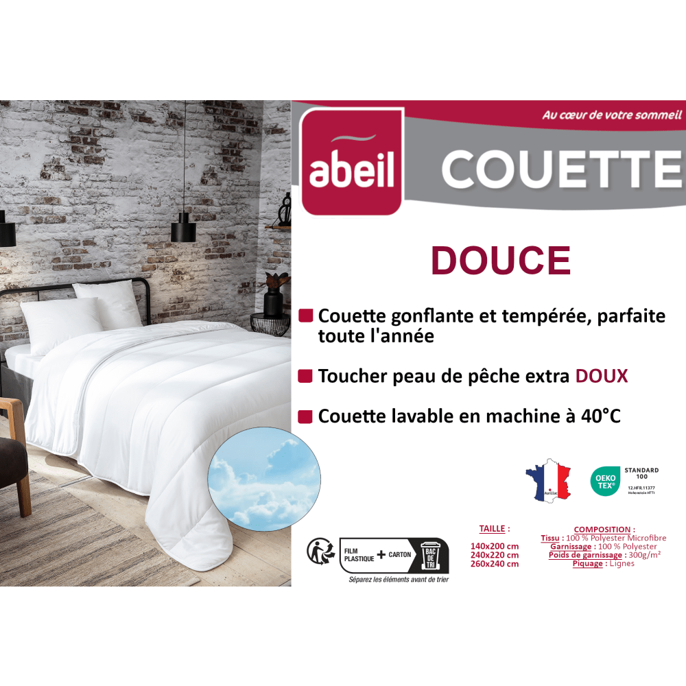 Ensemble comprenant 1 housse de couette de luxe 200 x 200 cm et 2 taies d'oreiller de luxe en microfibre SUPER DOUX & BEAU - ultra doux et doux pour la peau, un maximum de douceur et de confort pour un sommeil sans soucis.En microfibre de polyester brossé à 100 % (120 g/m²) , plus épais que le linge de lit en micro Elle est respirante, absorbe l'eau et lui permet de s'évaporer rapidement Couette 2 Personnes Parure Housse De Couette 200 X 200 Cm Ballade Champêtre | Leroy Merlin Couette Respirante Lavable Les couettes toutes saisons sont disponibles dans les dimensions 135 x 200 cm, 155 x 220 cm, 200 x 200 cm, 220 x 220 cm, 240 x 220 cm Elle est idéale pour toutes les saisons La fabrication est conforme aux normes strictes Oeko-Tex afin d’assurer que les fibres et les charges sont exemptes de substances nocives. Le rembourrage en fibre de polyester de 300 g/m² est scientifiquement conçu pour assurer une régulation thermique adéquate. Elle est idéale pour toutes les saisons. Le tricot possède une certaine élasticité et une certaine extensibilité qui lui permettent de s'adapter aux mouvements du corps Offre Housse De Couette 200 X 200 Cm, Taie D'oreiller 63 X 63 Cm Ou 50 X 70 Cm, Drap Plat 240 X 300 Cm 40877 Comme elle est tendre et douce, elle n'irrite pas la peau. Le rembourrage en fibre de polyester de 300 g/m² est scientifiquement conçu pour assurer une régulation thermique adéquate. Le piquage permet également à la couette toutes saisons de mieux s'ajuster au corps.