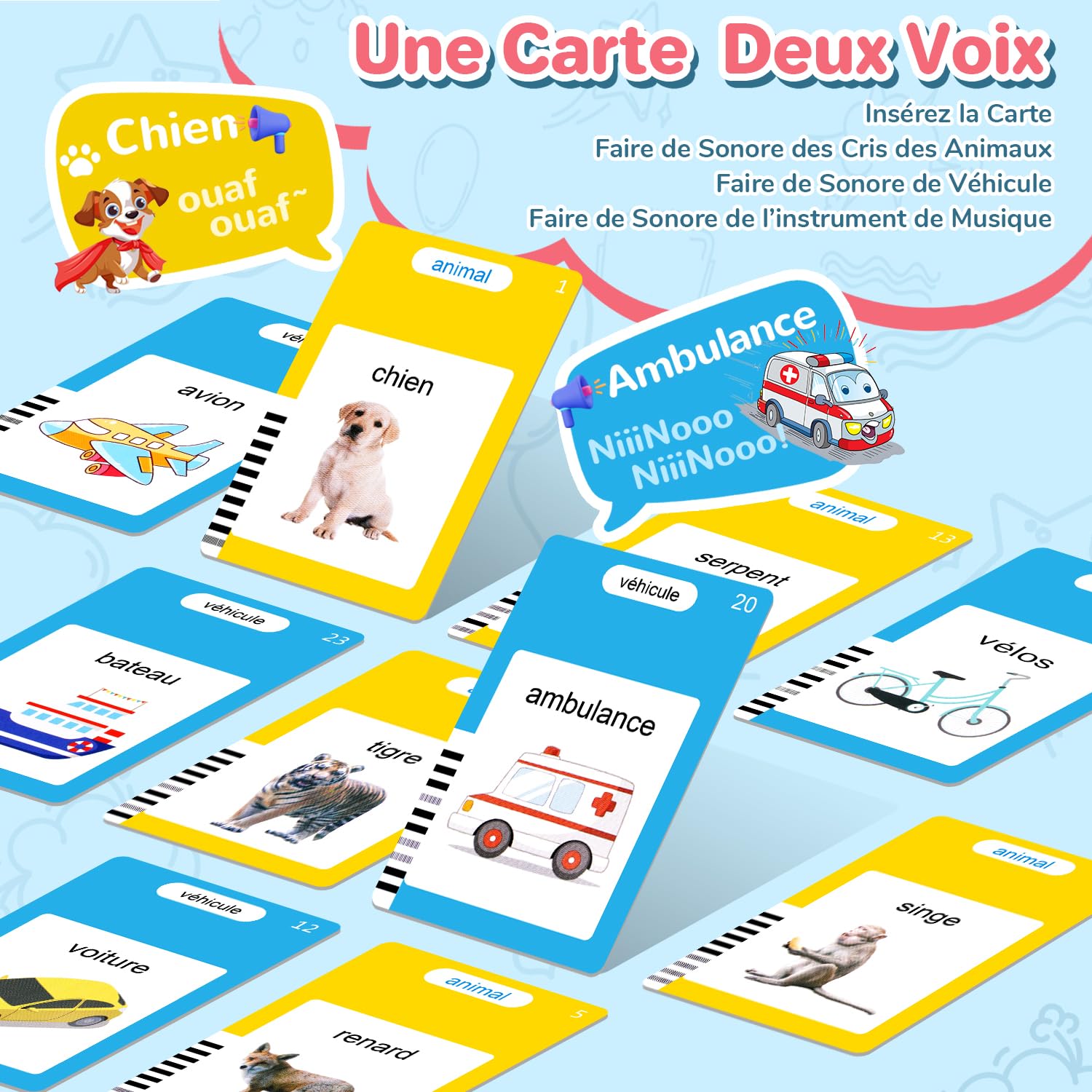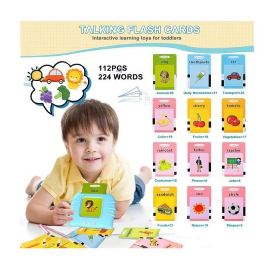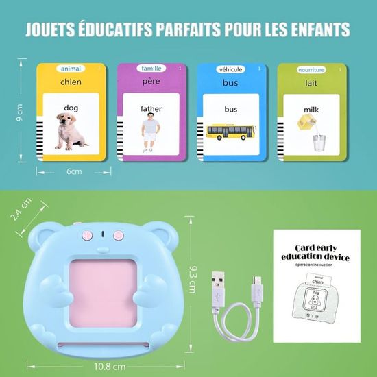 Facile à utiliser Allumez l'appareil et insérez la carte flash, et le lecteur prononcera. Jouet de voyage amusant pour tout-petits, les tout-petits peuvent jouer et apprendre pendant le voyage sans s'ennuyer. 【Pas d'écran, Protégez Vos Yeux】Il est livré avec un câble de chargement USB, qui peut être utilisé jusqu'à 5-6 heures après une charge de 1 heure et peut s'éteindre automatiquement après 5 minutes d'inactivité. Vous pouvez également passer en mode comptine en appuyant sur le bouton de volume. Meilleur cadeau pour les anniversaires des tout-petits filles garçons, Halloween, Noël, etc. Appareil éducatif sonore, ressources d'apprentissage préscolaire] Les jouets d'apprentissage électriques pour enfants de 3 ans et plus peuvent enseigner l'alphabétisation.Ce sont des ressources d'apprentissage préscolaire parfaites pour les tout-petits et des jouets sensoriels pour les enfants autistes Mes Premiers Mots – Cartes Parlantes Éducatives (2 à 6 ans) – La Cabane Une ressource d’apprentissage préscolaire parfaite pour les tout-petits et un jouet sensoriel pour les enfants autistes, tout en exerçant la coordination œil-main de votre bébé. Un excellent jouet éducatif d'apprentissage préscolaire pour l'éducation à domicile, la garderie ou la maternelle, et un cadeau idéal pour les enfants pour les anniversaires, Halloween, Pâques, Noël, etc. Aucun WIFI n'est requis, les jouets éducatifs pour enfants sans écrans électroniques peuvent mieux protéger les yeux des enfants, et l'utilisation de matériaux non toxiques de haute qualité permet aux enfants d'apprendre dans un environnement entièrement sûr. Appuyez simultanément sur les boutons « Répéter » et « Volume » pendant 2 secondes (lorsque vous entendez la tonalité) pour passer au mode souhaité. Carte Parlante 510 Mots Carte Flash Parlante Anu00e7ais, Jouer Enfants 2 Ans Pour Enfants De 2 A 6 Ans Cartes Educatives Pour Enfants Cadeaux D Anniversaire Blu Francais Anglais Bilingue G1172 Carte Yoto Grâce à ses 255 cartes recto-verso, la carte parlante Montessori propose l'apprentissage de 510 mots répartis en 31 thèmes variés. Une richesse thématique qui permet aux enfants d'élargir leur vocabulaire tout en s'amusant Il inclut également des chansons populaires pour enfants. Les cartes flash parlantes couvrent 31 sujets, y compris 56*animaux, 31*produits, 30*emplacements, 30*adjectifs, 26*lettres, 25*véhicules, 24*jouets, 24*types de corps, 21*aliments, 20*comportements, 18*types de météo, 18*sortes de fruits, 17*légumes, 16*types de maisons, 16*types de vêtements, 13*numéros, 12*mois, 12*instruments, 10*postes, 10*naturels, 10*sortes de balles, 9*couleurs, 8*métiers, 8*incontournables, 8*types de familles, 8*animations, 8*actions, 7*types de jours de la semaine, 6*émotions, 5*formes, 4*saisons. Il aide à améliorer les compétences cognitives précoces, la pratique de l'écoute et le développement du vocabulaire. Améliorez facilement les compétences cognitives précoces des tout-petits, faites de l'exercice d'écoute et augmentez le vocabulaire. Il s'éteindra automatiquement après 5 minutes d'inactivité. Utilisez des méthodes de jeu et d'apprentissage innovantes pour apprendre efficacement aux tout-petits à se souvenir des mots !