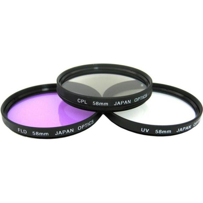 1 pare-soleil d'objectif de 58 mm. Contenu de l'emballage : 1 filtre UV de 58 mm., 1 filtre de 58 mm. Il élimine l'éblouissement des surfaces non métalliques, telles que l'eau. La lumière réfléchie apparaît souvent sous forme d'éblouissement blanchâtre qui lave la couleur d'une image. Seul le contenu de l'emballage ci-dessus, les autres produits ne sont pas inclus. Le filtre CPL offre une amelioration de la couleur et du contraste. La reflechie apparaît souvent comme l'eblouissement blanchatre qui lave la couleur dans une... Kit K and F Concept avec filtre UV, filtre circulaire protecteur polarisant (CPL), et filtre à Un polariseur corrige ce problème. Filtre Crystal Optics de haute qualité. Produisez un nuage profond, dramatiquement bleu et blanc. Il peut également réduire la lumière ultraviolette indésirable et l'atmosphère causée par le rayonnement bleu et les ultraviolets. Kit Accessoire Objectif 58mm 58mm Près Kit Filtre Pour Canon EOS 4000D 3000D 2000D 1500D 1300D 90D 77D 80D 200D 250D 760D 800D 1200D 100D Objectif 18-55mm Pare-soleil 58 Mm Bouchon Filtre d'objectif 77 mm UV CPL - K&F Concept L'erreur de mesure autorisée est de +/- 1 à 3 cm. EF 70-210 mm f/4 DA 55-300 mm f/4-5., 8 ED, etc., Couleur : noir. Le filtre UV est utilisé pour protéger l'objectif de votre appareil photo des rayures, de la poussière, de la saleté, de l'humidité et des traces de doigts. iFutniew Caractéristiques : Taille du filetage (mm) : 58 mm., État : neuf., Poids net : 15 g. 1 bouchon d'objectif de 58 mm. Compatible avec SLR/DSLR/DC/caméscope.